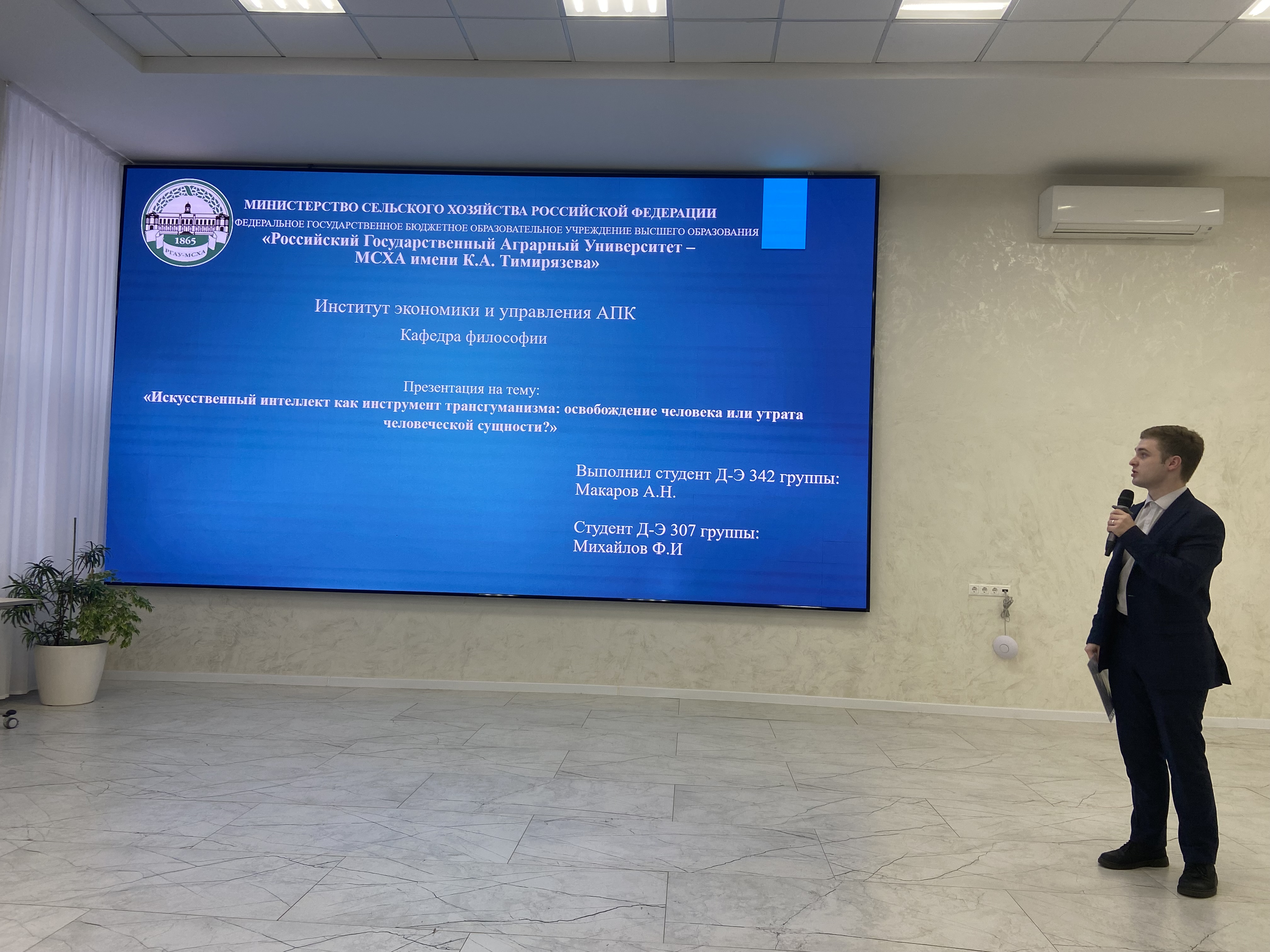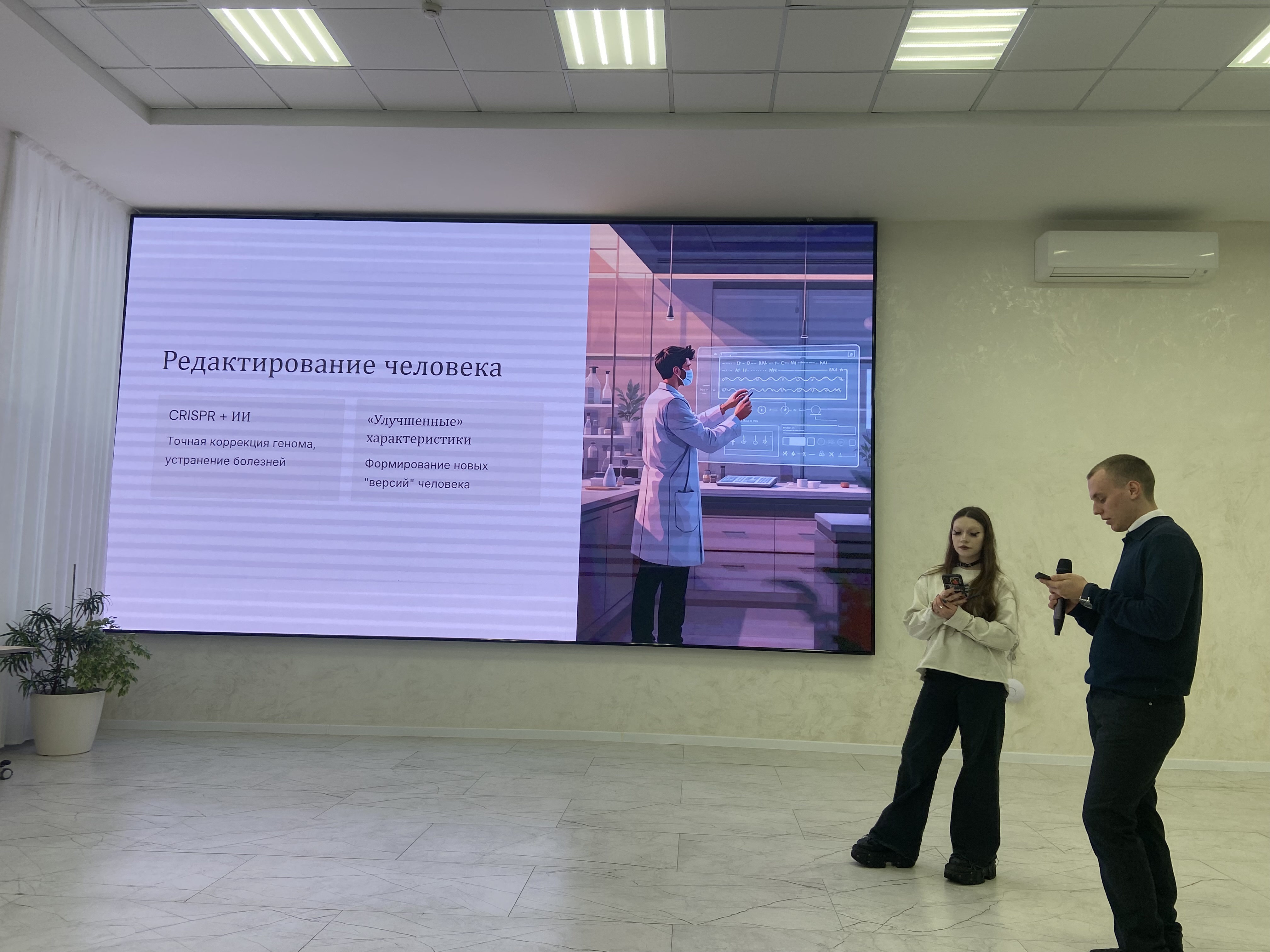 Самищева Руслана и Максим В. представили тему «ИИ как гуманный инструмент трансгуманизма». В их докладе была предпринята попытка рассмотреть технологии не как угрозу, а как средство для расширения возможностей человека и решения социальных проблем.