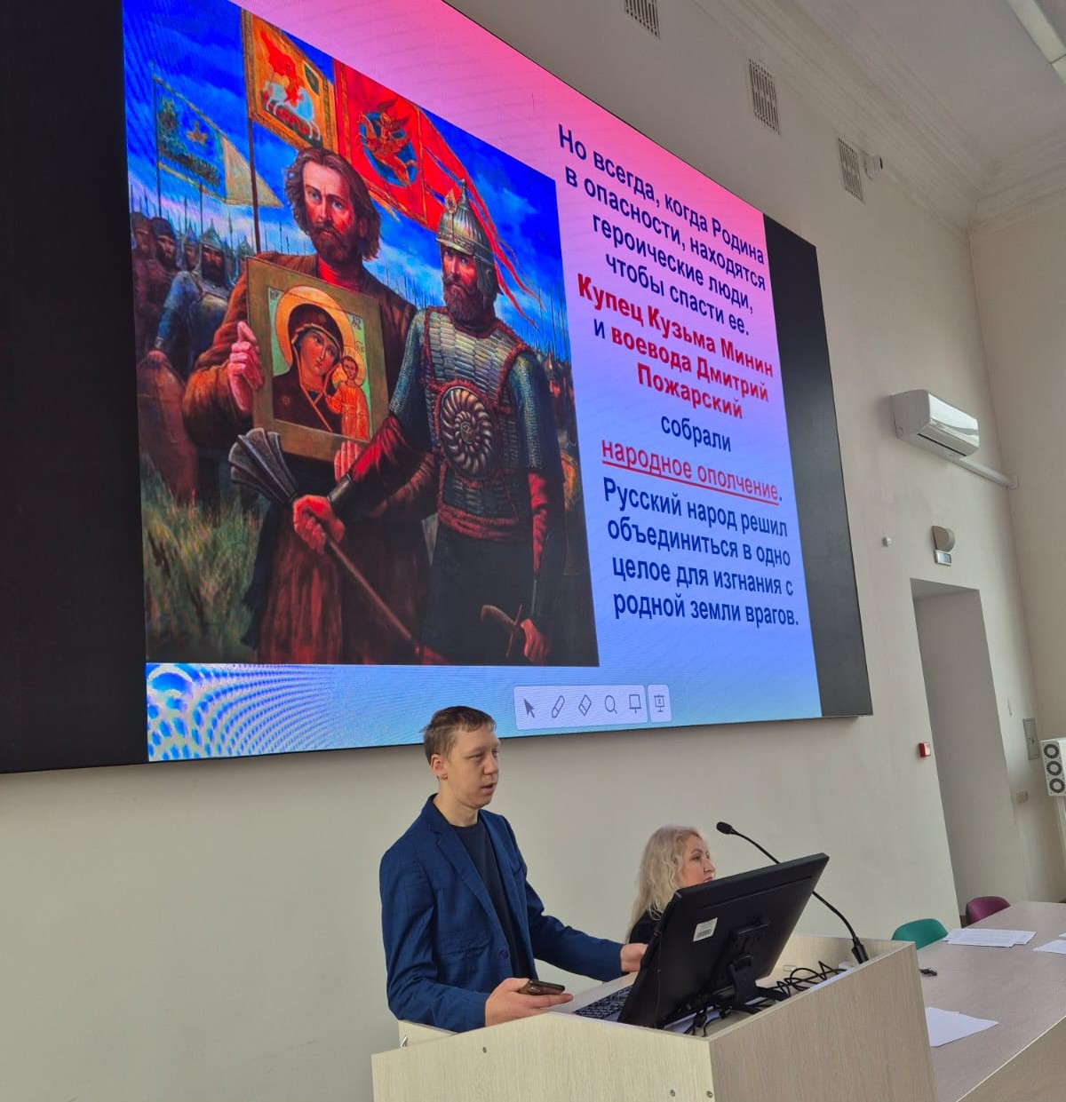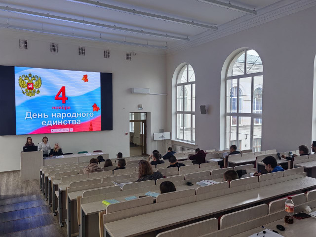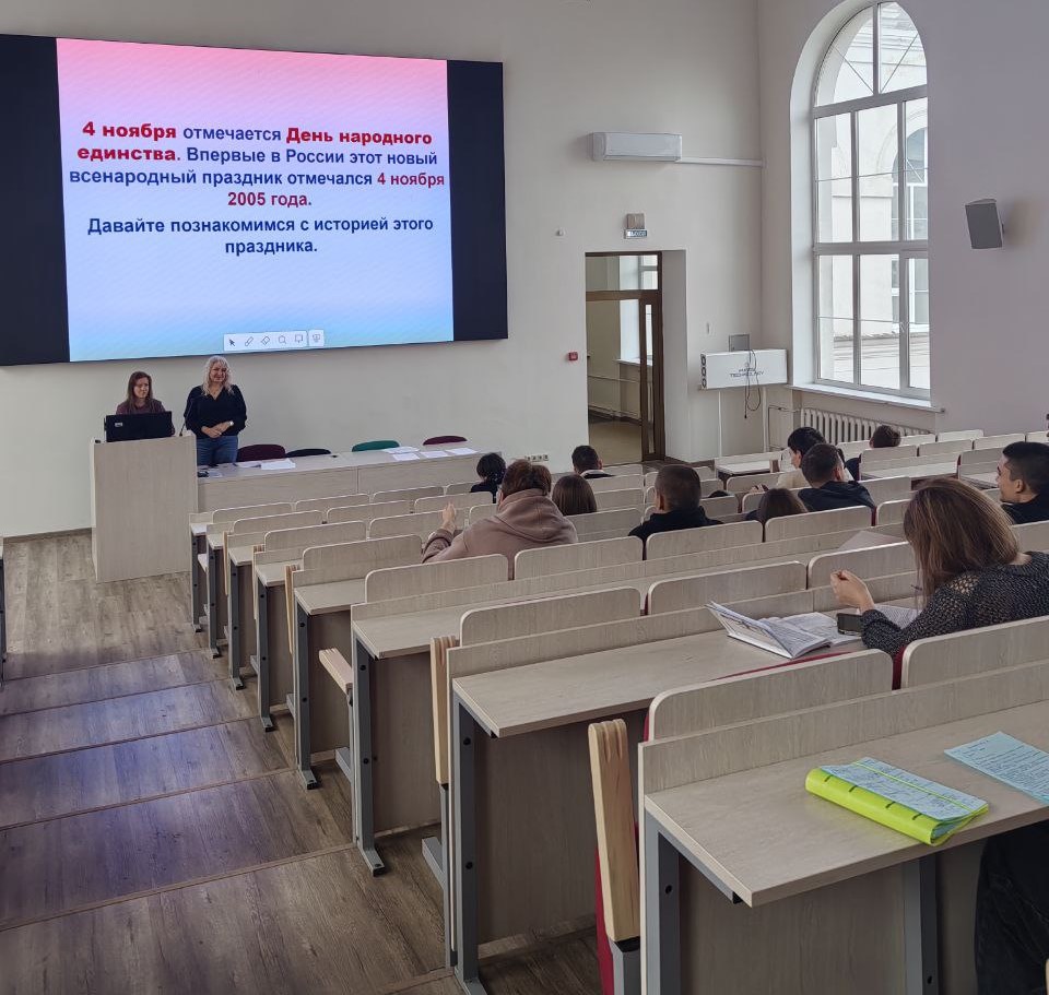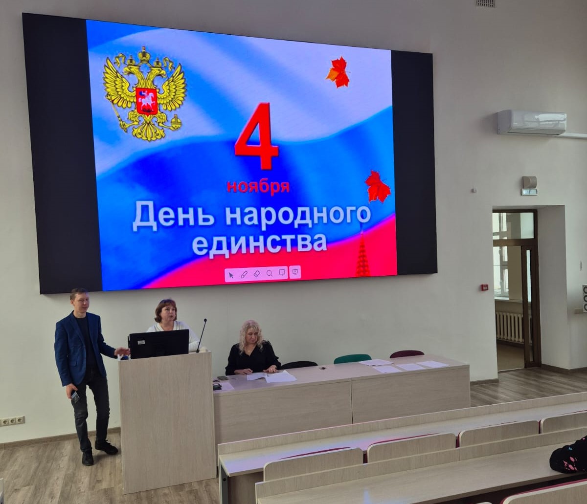 Преподаватели кафедры инженерной и компьютерной графики: заведующий кафедры Чепурина Е.Л. и доценты кафедры Рыбалкин Д.А., Волкова С.Н., Кушнарева Д.Л. совместно со студентами третьего курса Института механики и энергетики имени В.П. Горячкина провели мероприятие, посвящённое празднику Дня народного единства. Мероприятие началось с исторического экскурса, подготовленного преподавателями, который познакомил ребят с истоками праздника. Студенты вспомнили, что День народного единства учреждён в честь освобождения Москвы от польско-литовских захватчиков силами народного ополчения в 1612 году. Именно тогда проявилось единство русского народа перед лицом внешней угрозы.