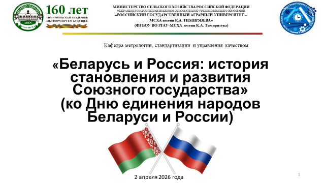2 апреля 2026 года на кафедре метрологии, стандартизации и управления качеством проведено патриотическое мероприятие «Беларусь и Россия: история становления и развития Союзного государства».