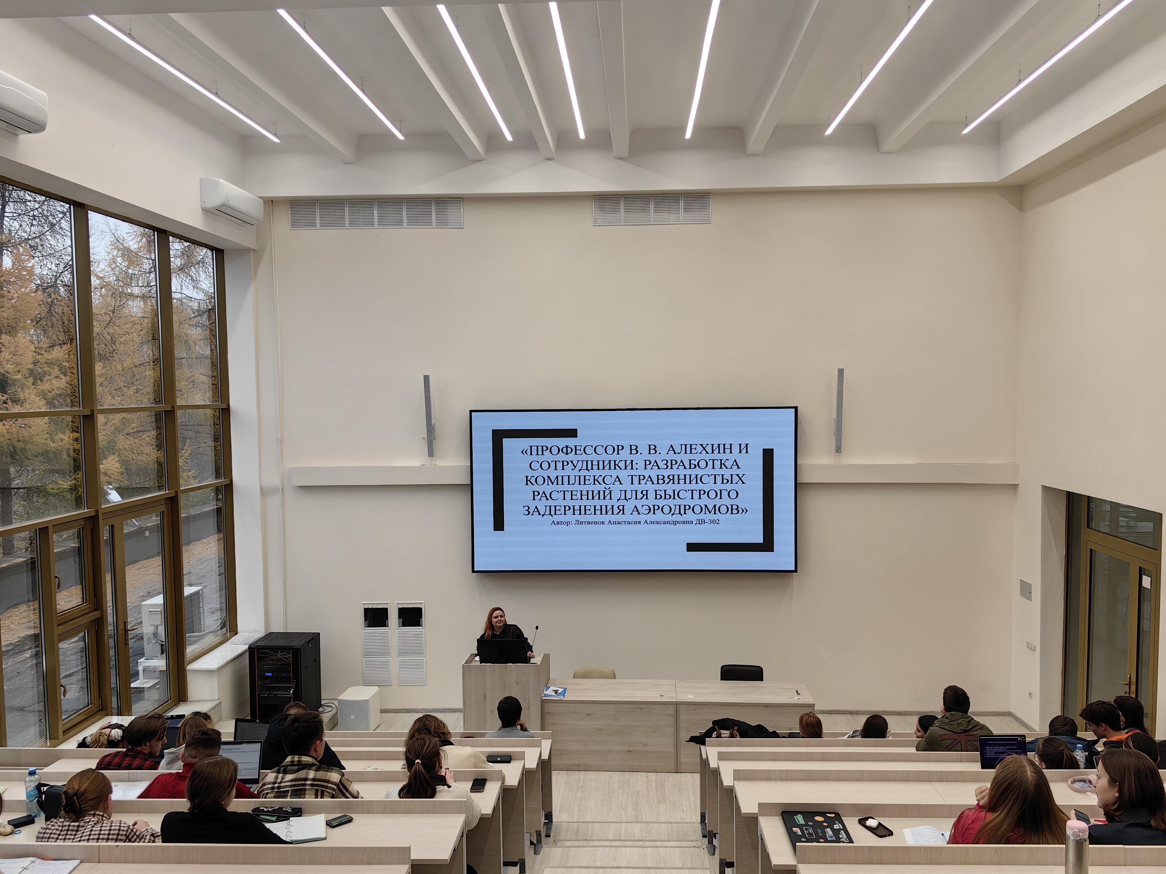 Нельзя не отметить доклад Литвенок Анастасии о разработке профессора Алехина Василия Васильевича и его команды - комплекса травянистых растений для быстрого задернения аэродромов. Казалась бы, не самая очевидная вещь для простого человека способна также оказать решающее значение в сложную минуту.