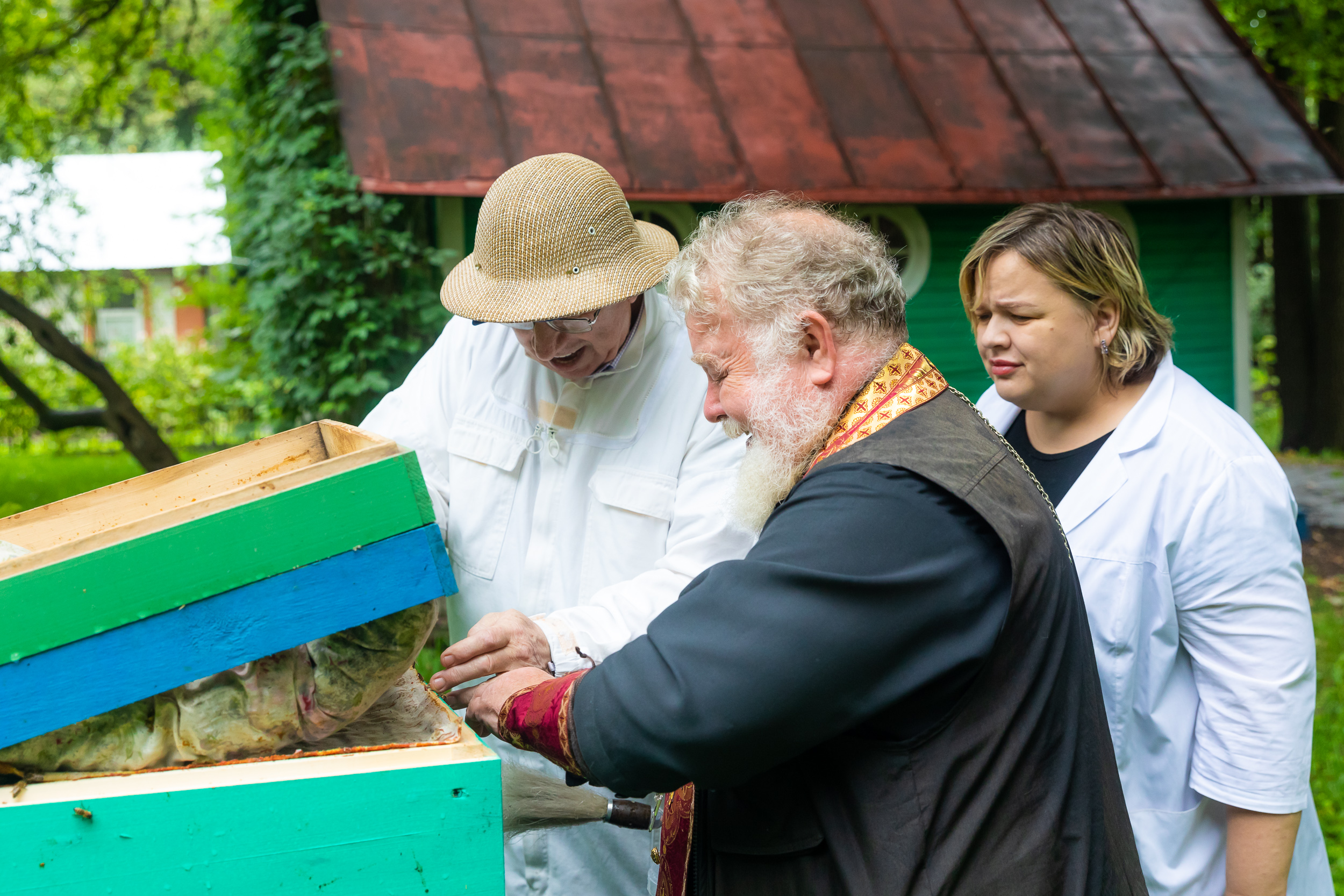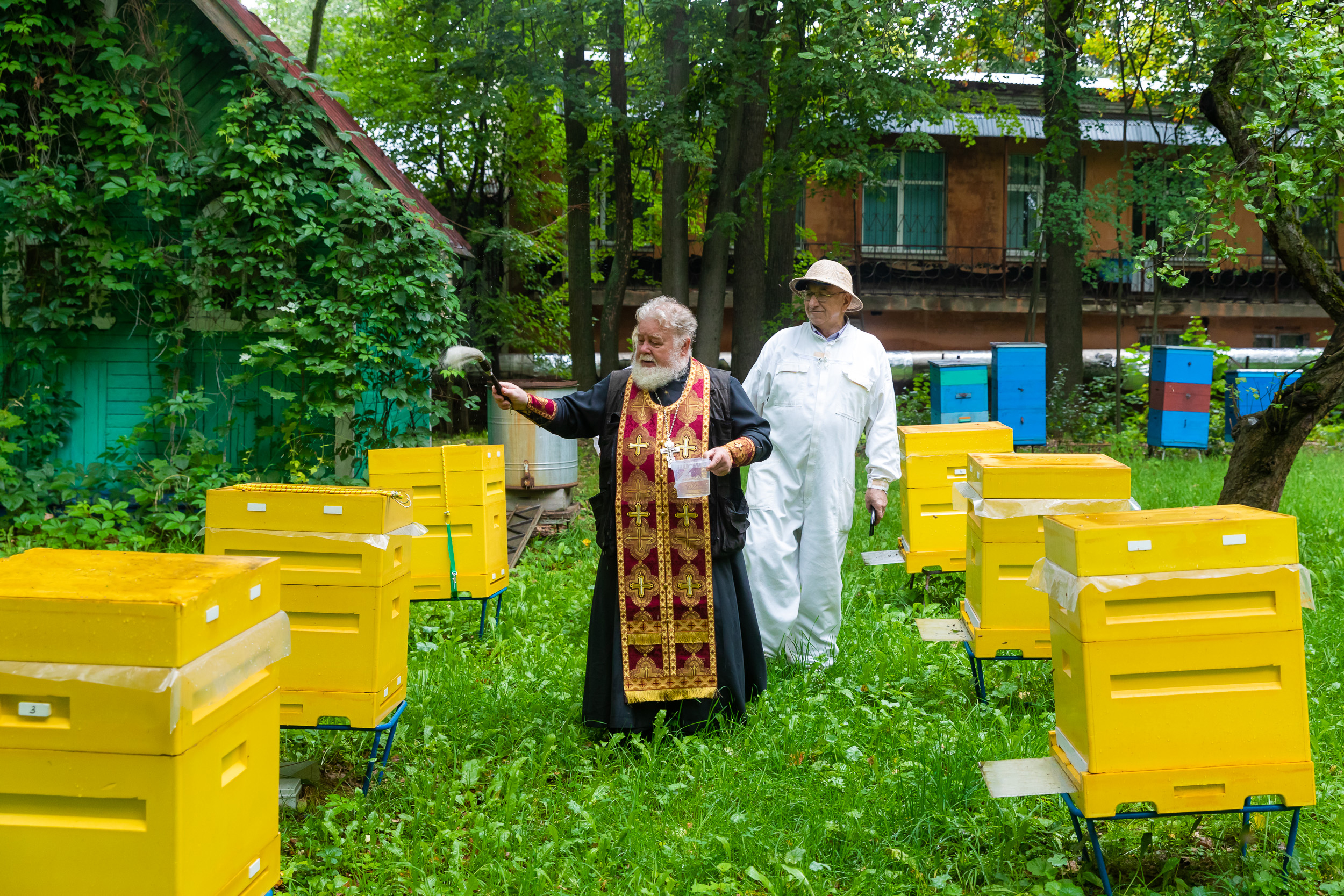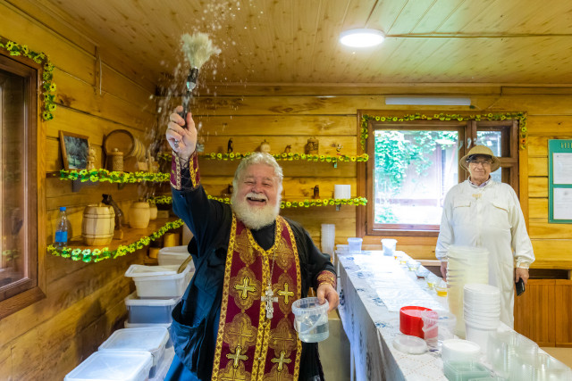 14 Август / 2023В этот особый день во всех православных церквях производят освящение меда, и домовой храм Тимирязевской академии – не исключение. Его настоятель отец Владимир побывал на кафедре и учебно-опытной пасеке университета. Священнослужитель провел богослужение и чин освящения не только главного продукта пчелиных семей, но и самих тружениц полей и цветов - пчел нового породного типа «Московский» карпатской породы, созданного учеными университета. Отец Владимир познакомился с устройством пасеки и ее работой.