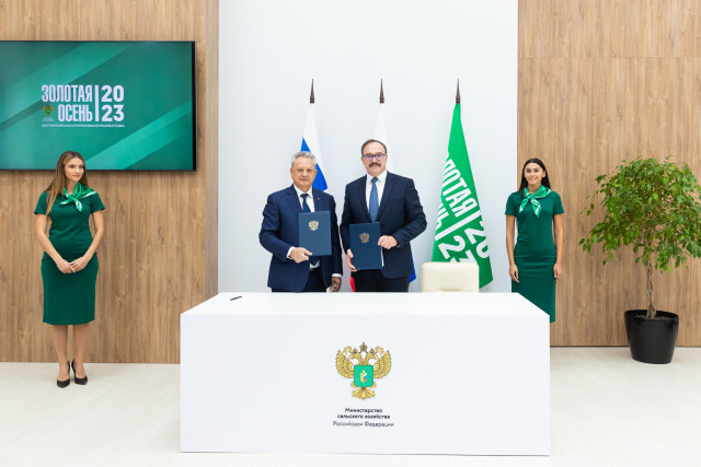РГАУ-МСХА имени К.А. Тимирязева и Группа компаний «ЭФКО» стали сторонами первого соглашения, заключенного на полях Российской агропромышленной выставки «Золотая осень - 2023». Подписи под документом о сотрудничестве поставили ректор университета, Академик РАН, профессор Владимир Иванович Трухачев и директор по стратегическому развитию холдинга Владислав Анатольевич Романцев.