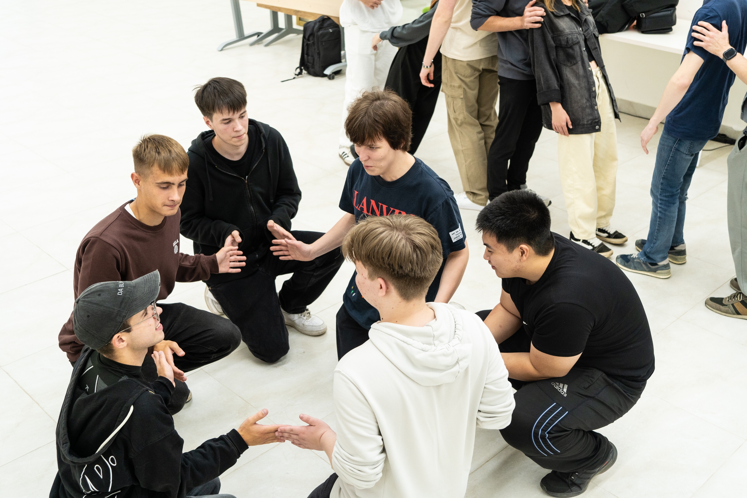 Затем состоялись конкурсы на командообразование, которые помогли ребятам лучше узнать друг друга, наладить первые контакты и почувствовать себя частью единого коллектива. Это важный шаг для формирования дружных студенческих групп.