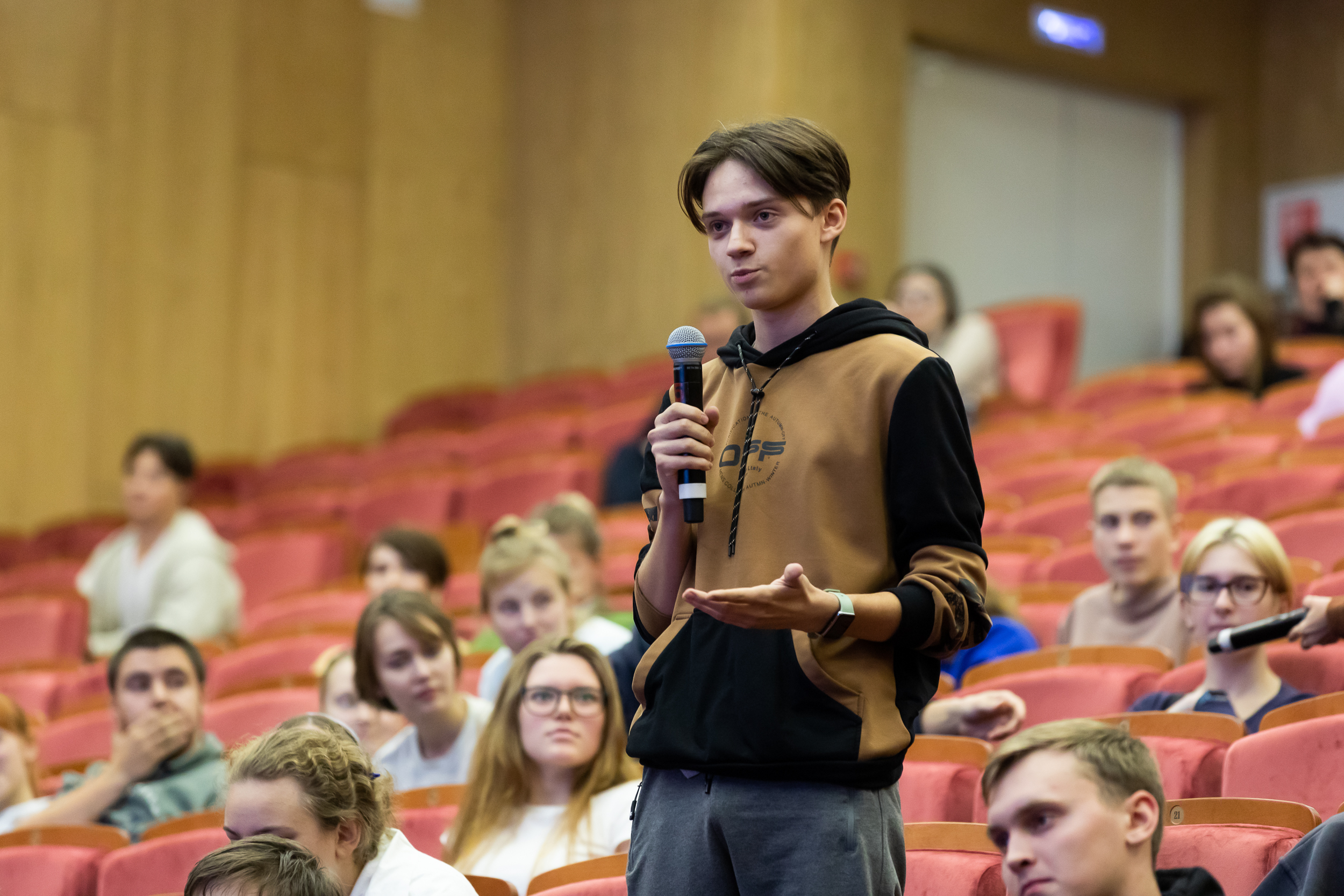 16 Сентябрь / 2022В ходе живого общения первокурсники интересовались у ректора различными аспектами учебного процесса, проживания в Студенческом городке, питания в столовых и буфетах, возможности занятий в Конноспортивном комплексе, приобретения военной специальности, спортивными секциями и творческими кружками. Студенты воспользовались возможностью поделиться своими чаяниями и высказать предложения руководителю университета.