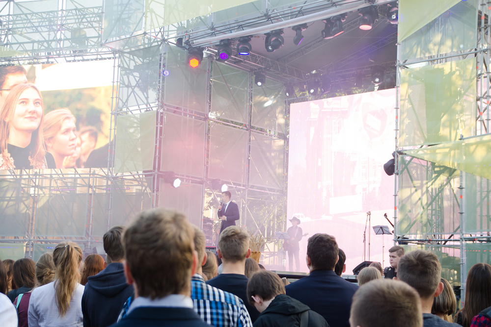 На Петровской площади вечером 1 сентября собрались первокурсники, которых в этом году поступило 3500 человек, их родители и друзья, студенты старших курсов, педагоги и сотрудники. Организаторы преследовали цель рассказать о полуторавековой истории вуза, ее основателях, достижениях и духовных скрепах, чтобы пробудить в «новичках» чувство гордости от сопричастности к легендарной Тимирязевке. И им это удалось! Видеоальбомы, которые сменяли друг друга на установленных огромных мониторах, передавали атмосферу и уклад Петровской земледельческой и лесной академии, а прямые репортажи с конно-спортивного комплекса, зоостанции, исследовательских лабораторий, музеев и библиотеки свидетельствовали о преемственности научных школ и тенденциях в современном аграрном образовании. Как правильно заметил руководитель ООО "Селекционная станция имени Н.Н. Тимофеева" Григорий Монахос, Тимирязевка за 152 года стала флагманом не только аграрного образования, но и и аграрной науки.