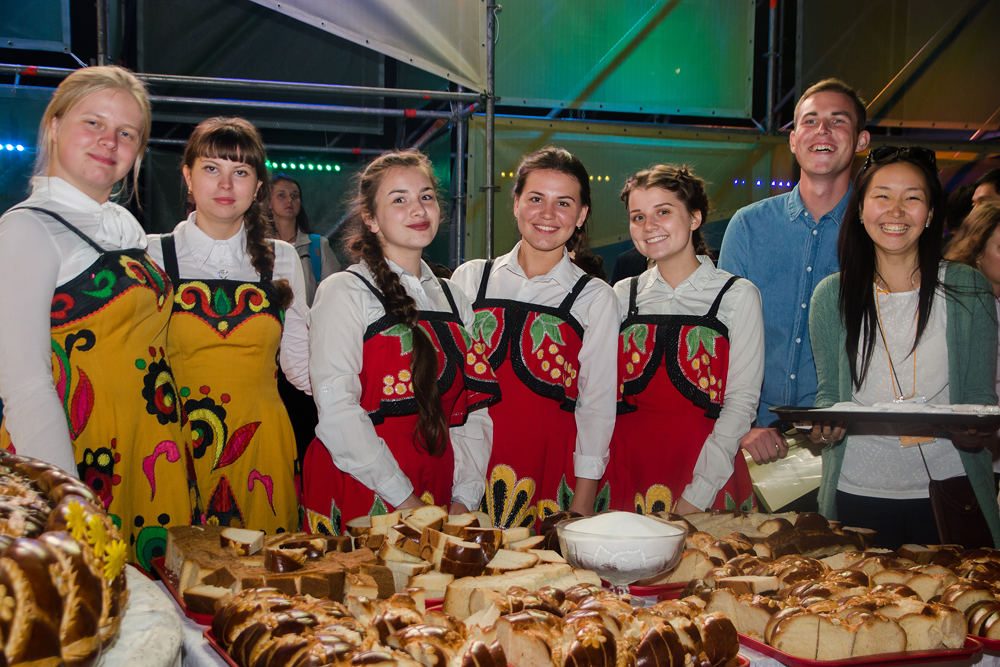 Обряд посвящения был закреплен произнесением клятвы первокурсника и поеданием первых ложек соли, которой угощали новоиспеченных студентов и.о. ректора и проректоры. Тут пришло время и каравая отведать, который в течение всего мероприятия красовался на площади и распространял ванильный дух сдобы на несколько метров.