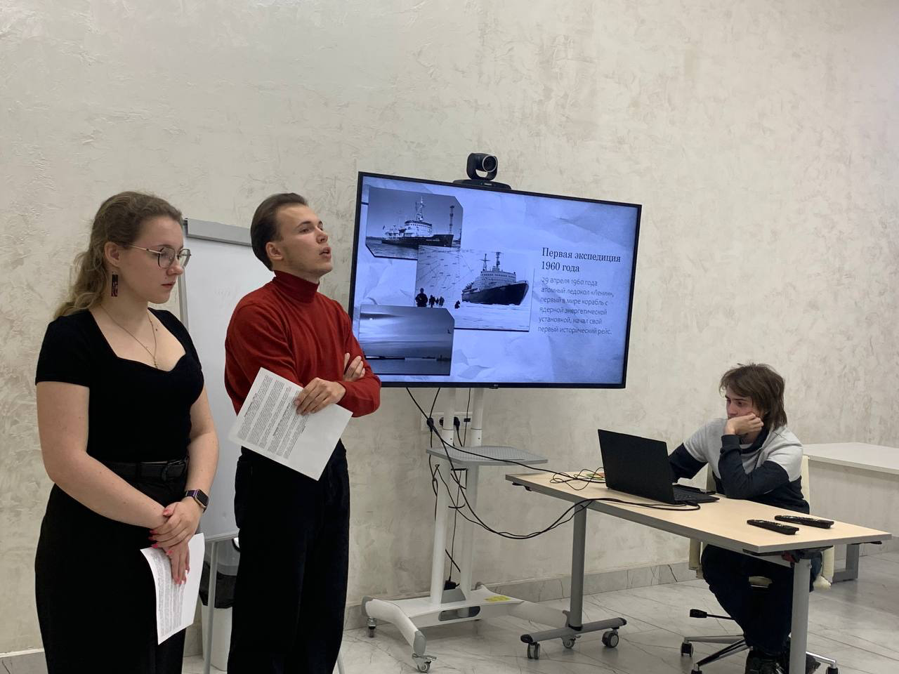 На круглом столе, организованном профессором кафедры истории Павлом Викторовичем Федоровым и доцентами той же кафедры Василем Тимерьяновичем Сакаевым и Еленой Игоревной Гончарук, речь шла о строительстве ледокола, его работе на трассах Северного морского пути. Особое внимание было уделено жизни «Ленина» после завершения работы в Арктике – в качестве музея.