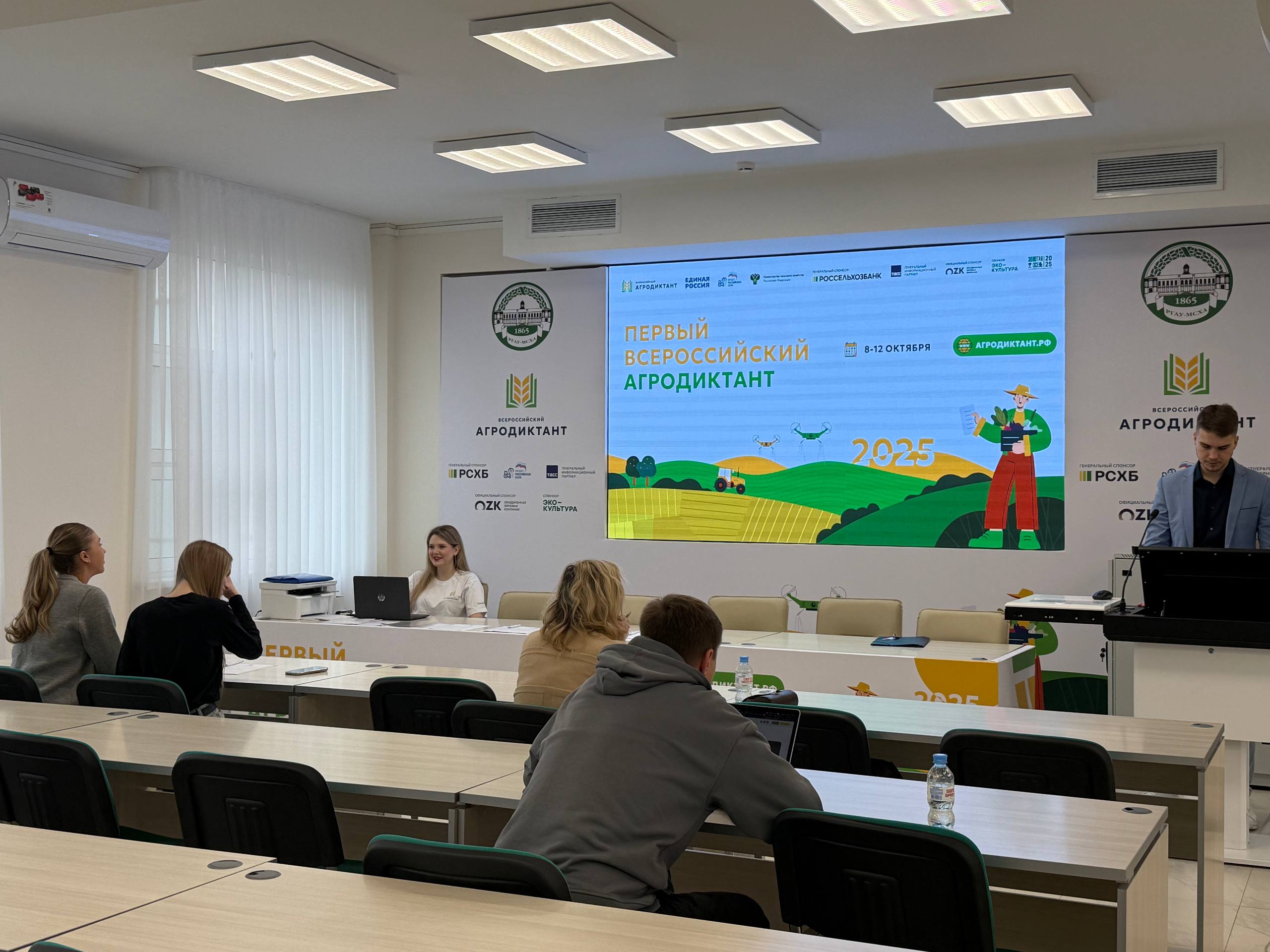 На площадке РГАУ-МСХА имени К.А. Тимирязева с 8 по 12 октября 2025 года прошёл Первый Всероссийский Агродиктант — важное образовательное и просветительское мероприятие в рамках XXVII Российской агропромышленной выставки «Золотая осень 2025». Студенты третьего курса кафедры связей с общественностью, речевой коммуникации и туризма оказали значительную помощь и поддержку в организации и проведении этого масштабного проекта.