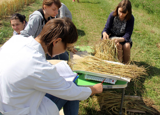 31 Июль / 2018Утром студенты пришли на Полевую опытную станцию и приступили к исследованию разных вариантов опытов, проводили анализ структуры урожая. Юноши и девушки определили количество растений (на одном квадратном метре), подсчитали число и массу зерен с одного колоса и множество других показателей.