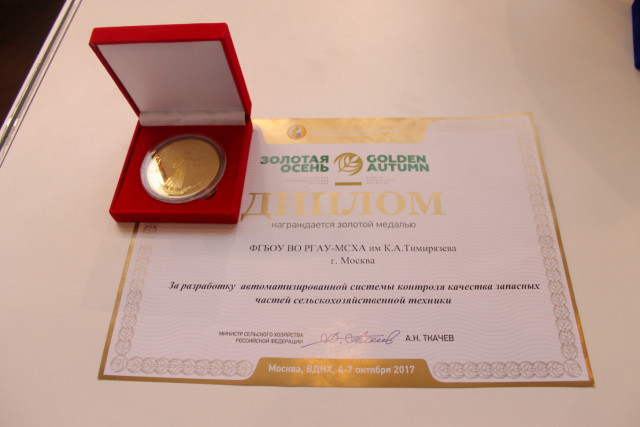 в номинации – разработка программного обеспечения и исполнительной аппаратуры для определения потребительских свойств сельскохозяйственной техники работа «Автоматизированное измерительное устройство для контроля физико-механических и геометрических параметров запасных частей сельскохозяйственной техники» (А.С. Дорохов, Ю.В. Катаев, Д. М. Скороходов) награждена дипломом и золотой медалью;