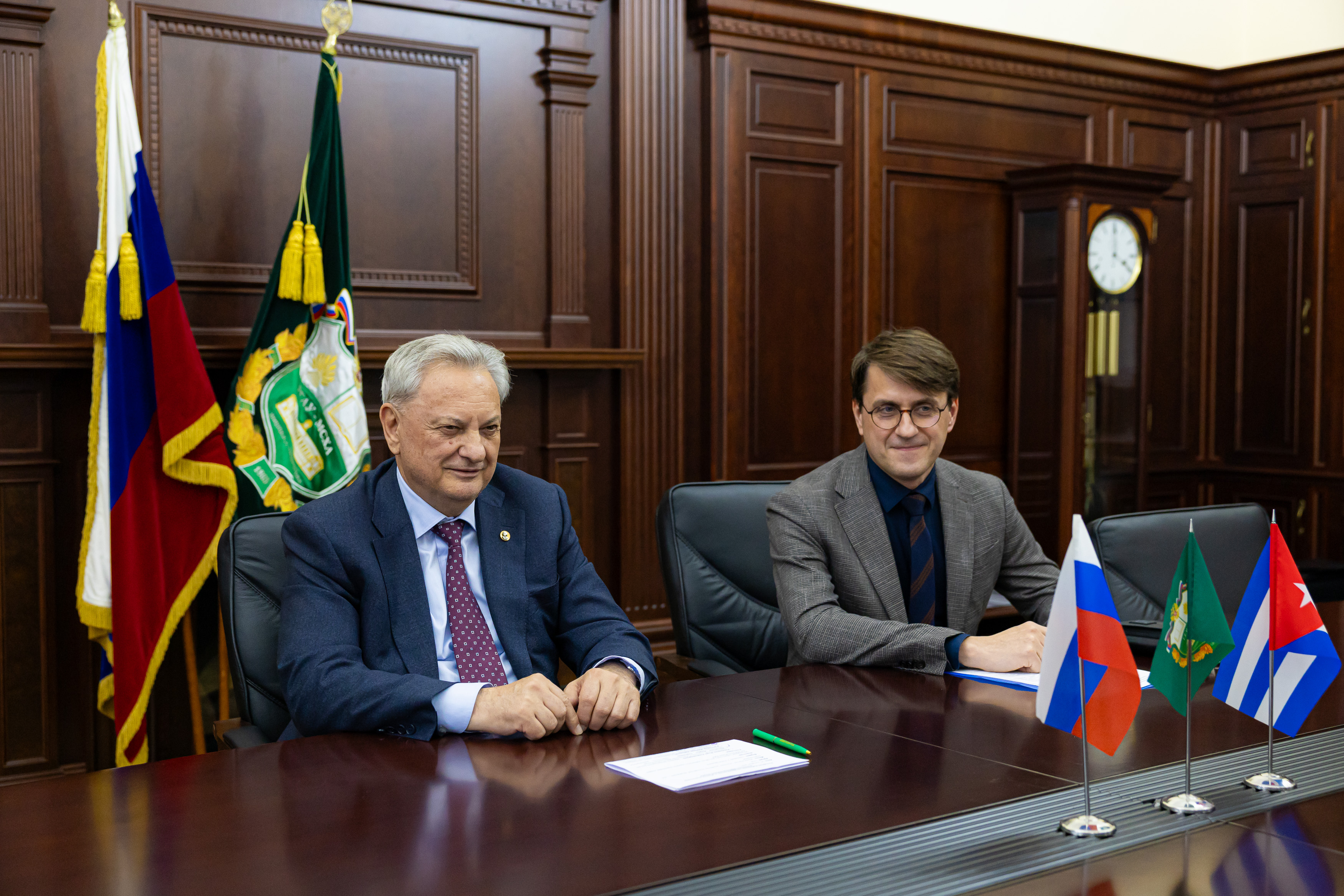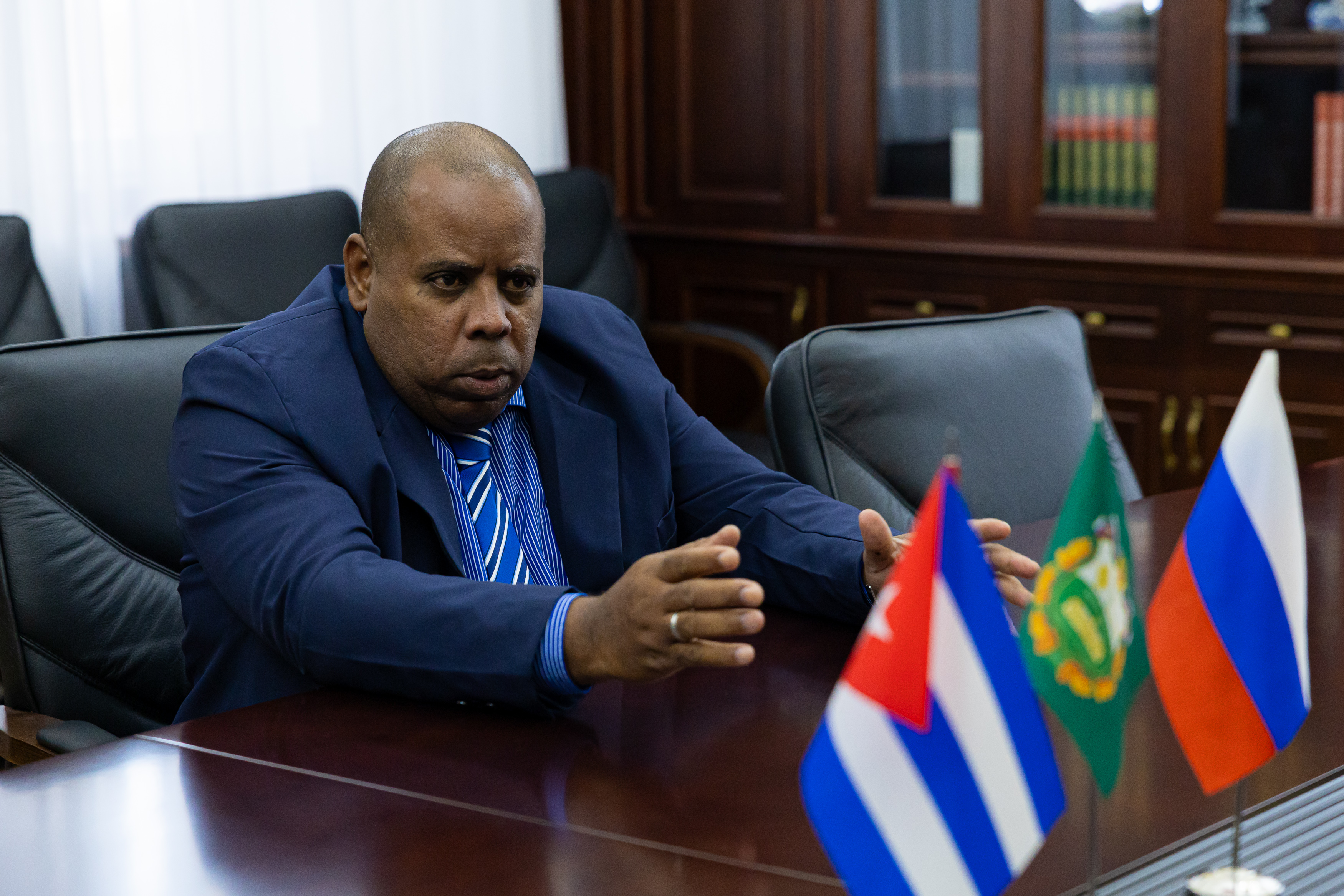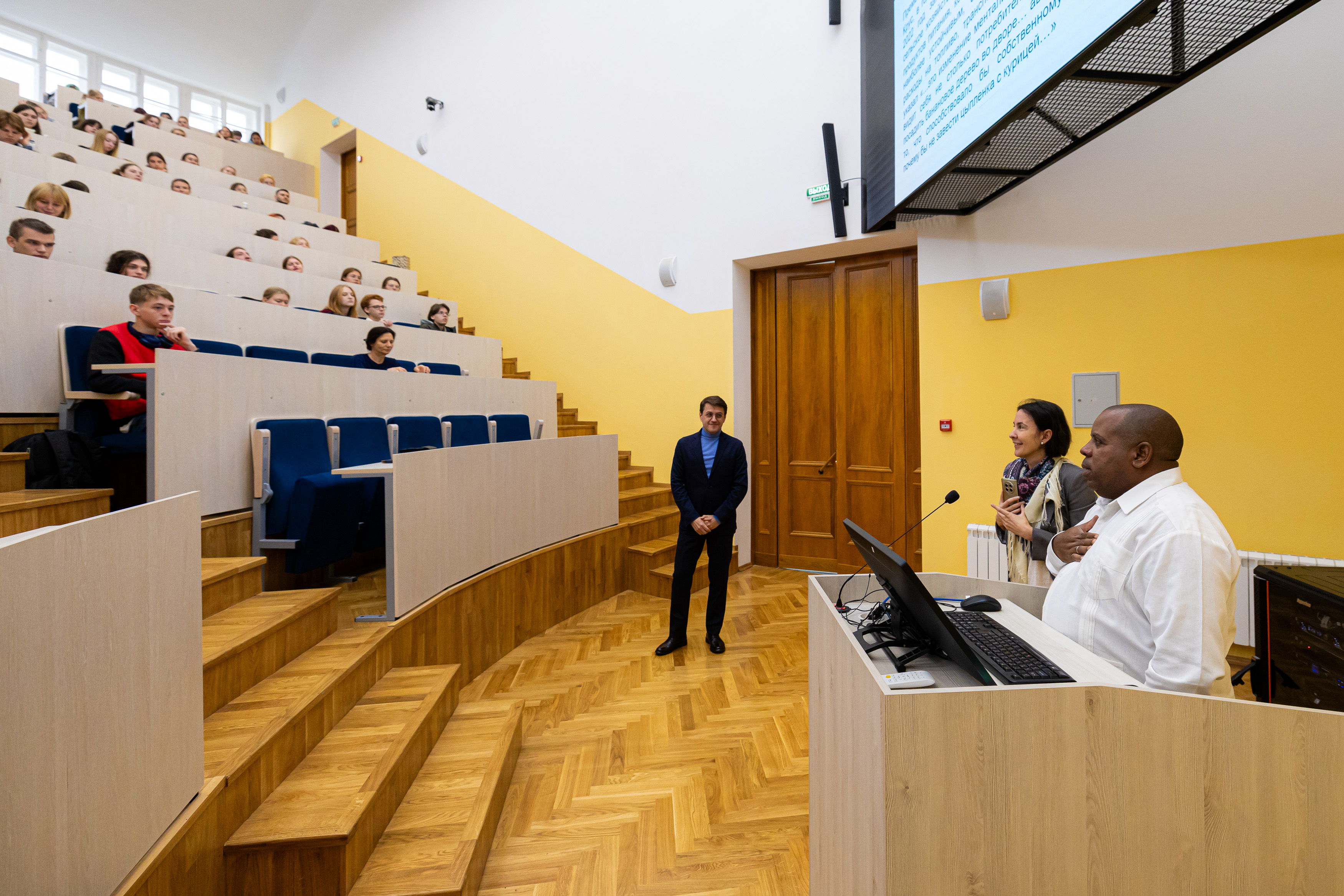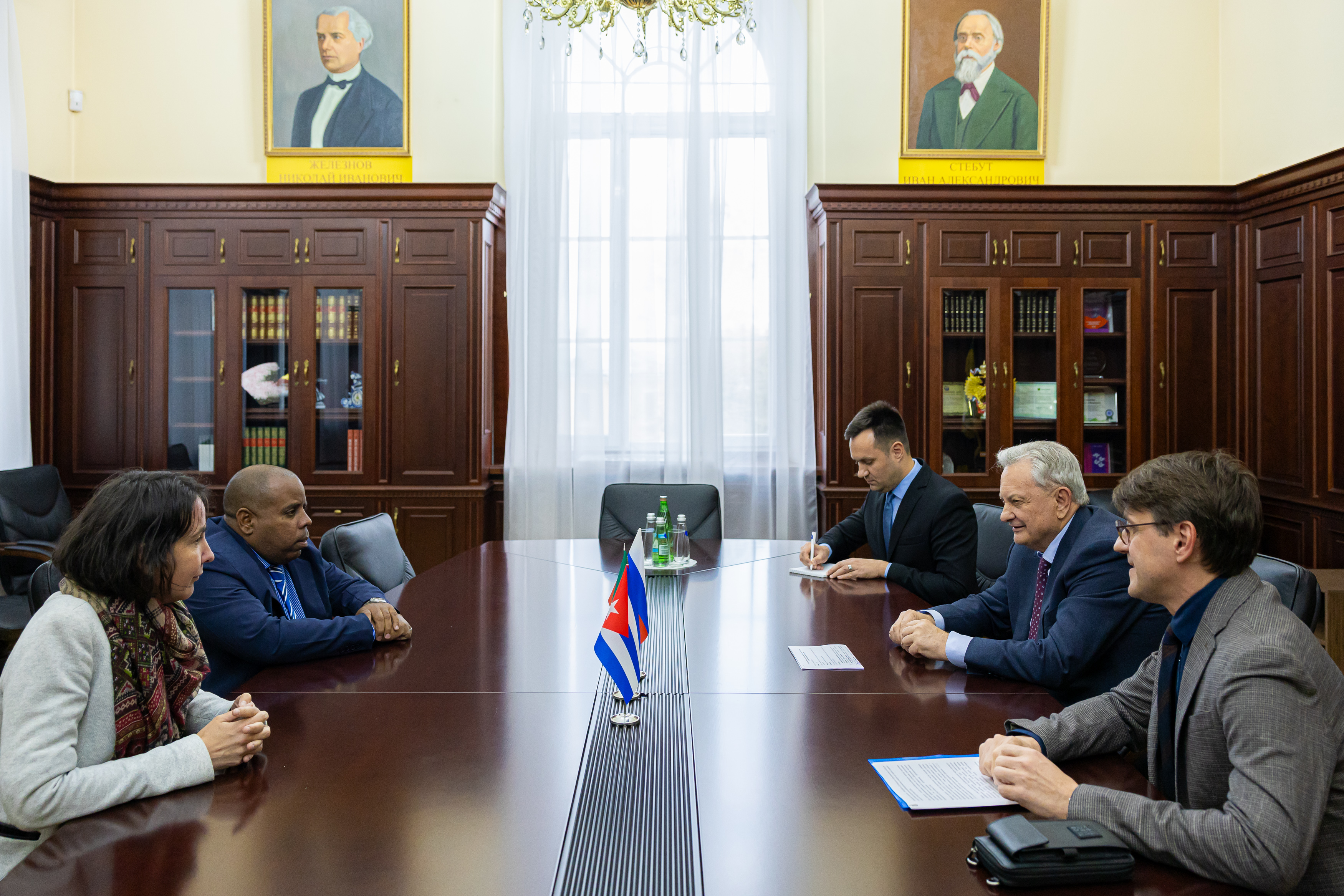 26 Сентябрь / 2025Основной целью визита являлась совместная разработка крупного образовательного проекта, направленного на подготовку национальных кадров в области сельского хозяйства для Республики Куба. В рамках насыщенной программы Александр Миранда Кабальеро подробно ознакомился с научной и образовательной инфраструктурой университета, провел три лекции для студентов Тимирязевки, а также принял участие в серии рабочих встреч с руководством вуза.