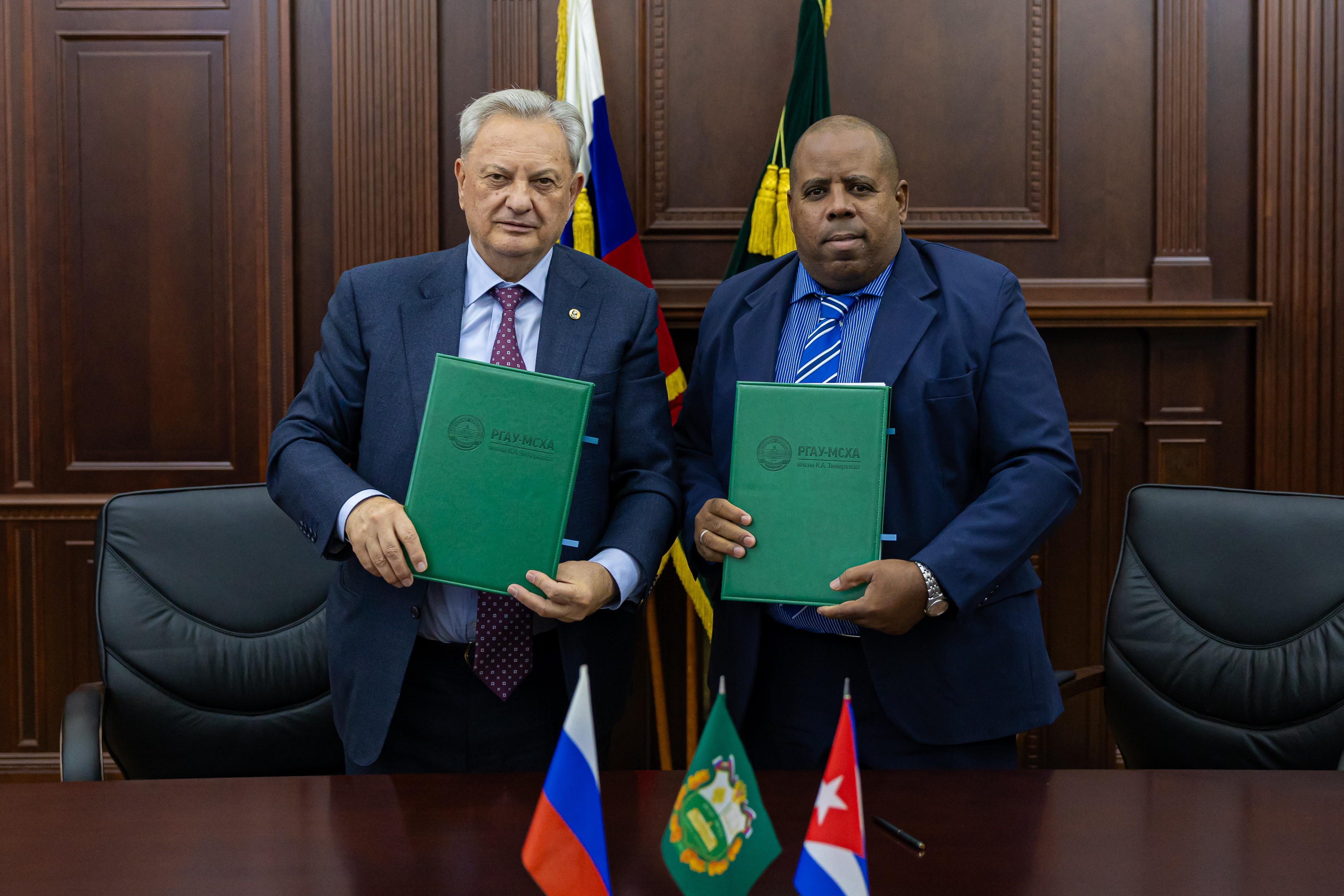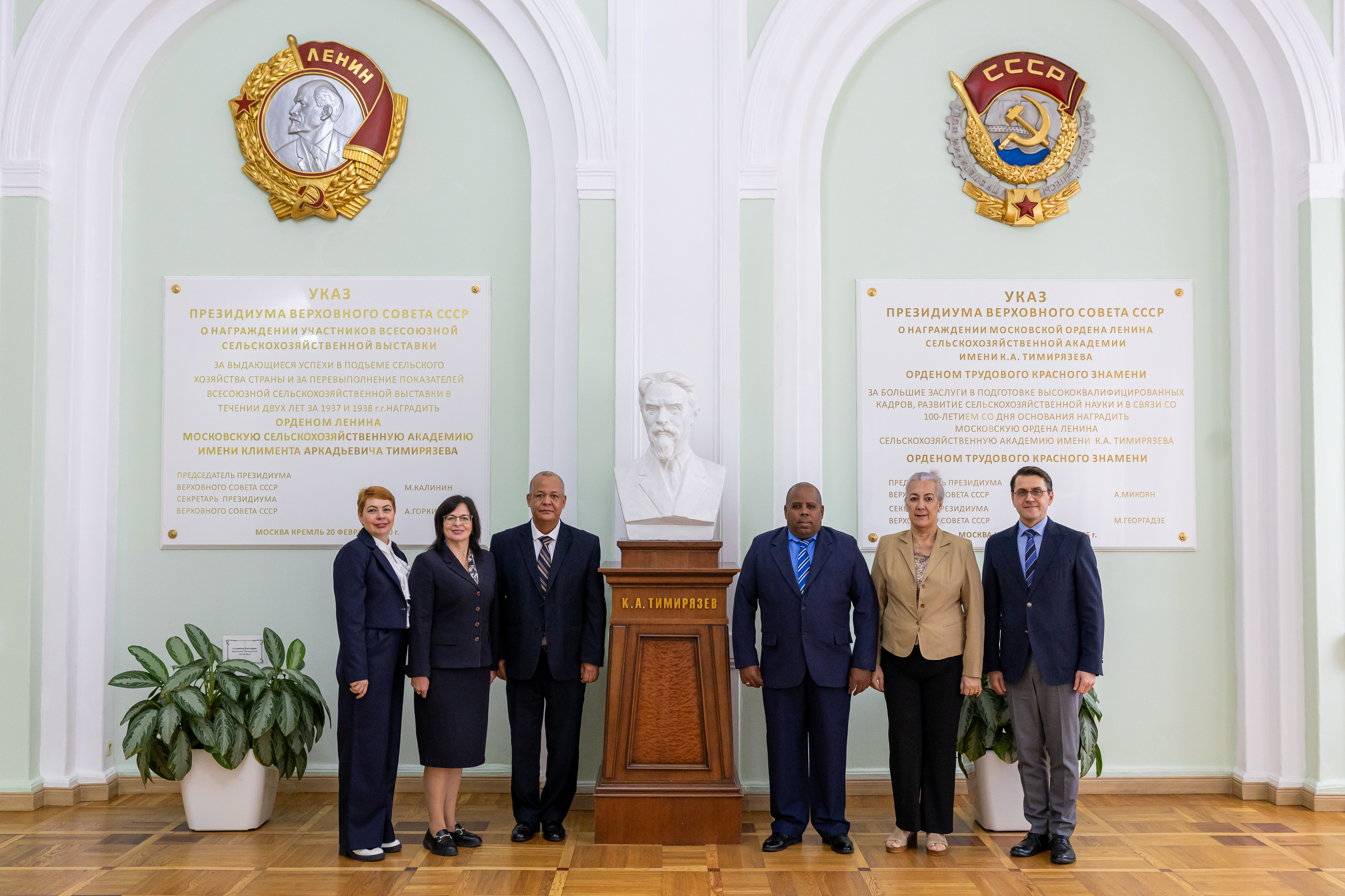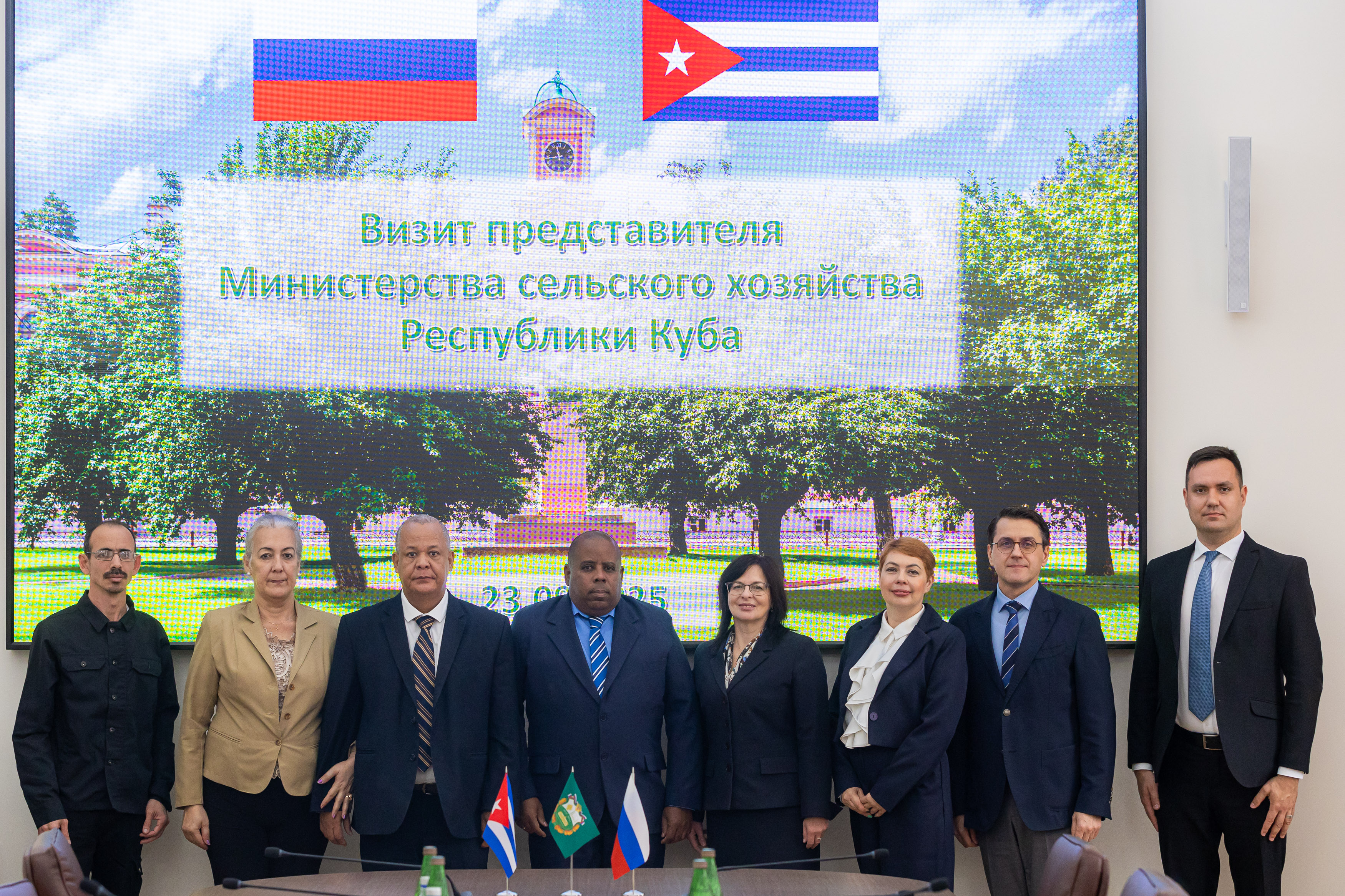 В период с 22 по 25 сентября 2025 года Российский государственный аграрный университет – МСХА имени К.А. Тимирязева принял с рабочим визитом директора департамента науки, инноваций и аграрной политики Министерства сельского хозяйства Республики Куба Александра Миранду Кабальеро. Ключевым итогом визита стало подписание Меморандума о взаимопонимании между Министерством сельского хозяйства Республики Куба и РГАУ-МСХА имени К.А. Тимирязева, что стало значимым шагом к укреплению российско-кубинского сотрудничества в области аграрной науки и образования.