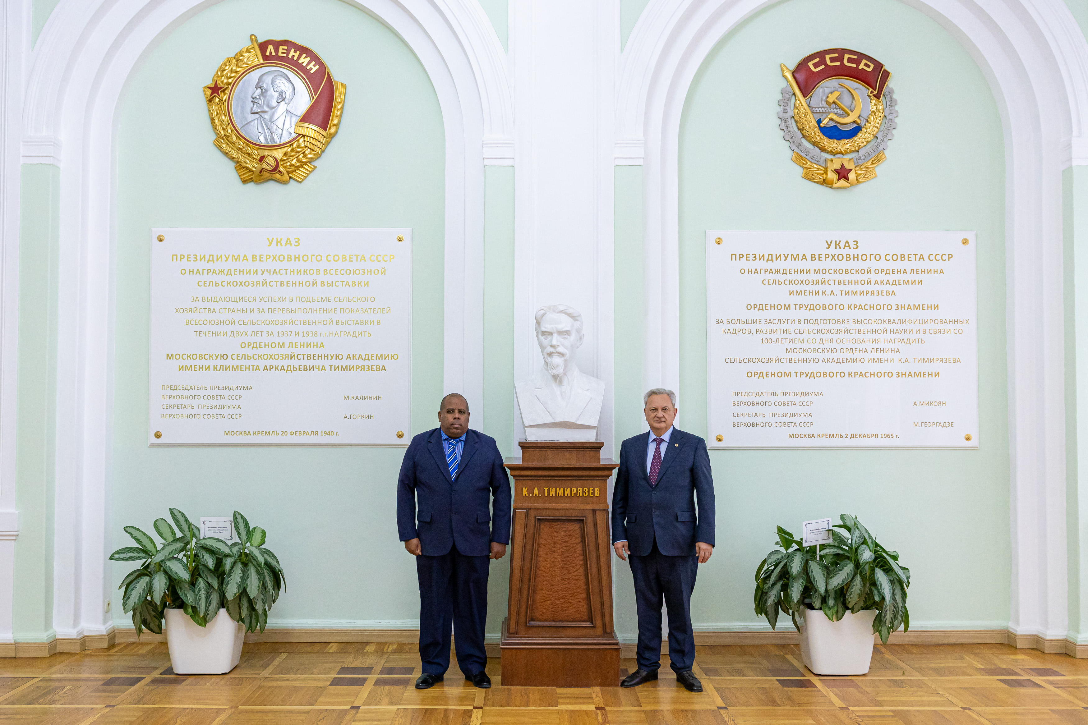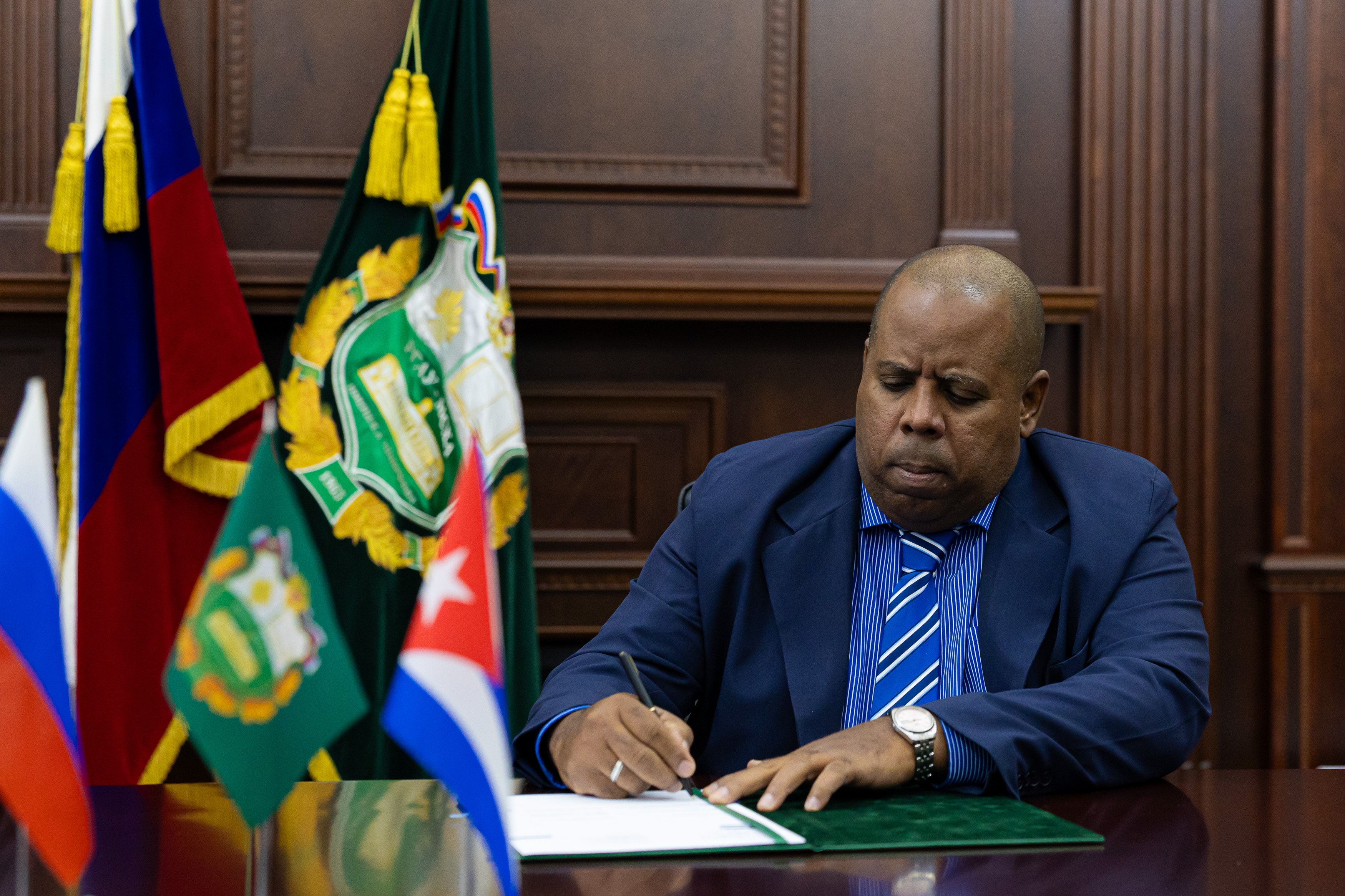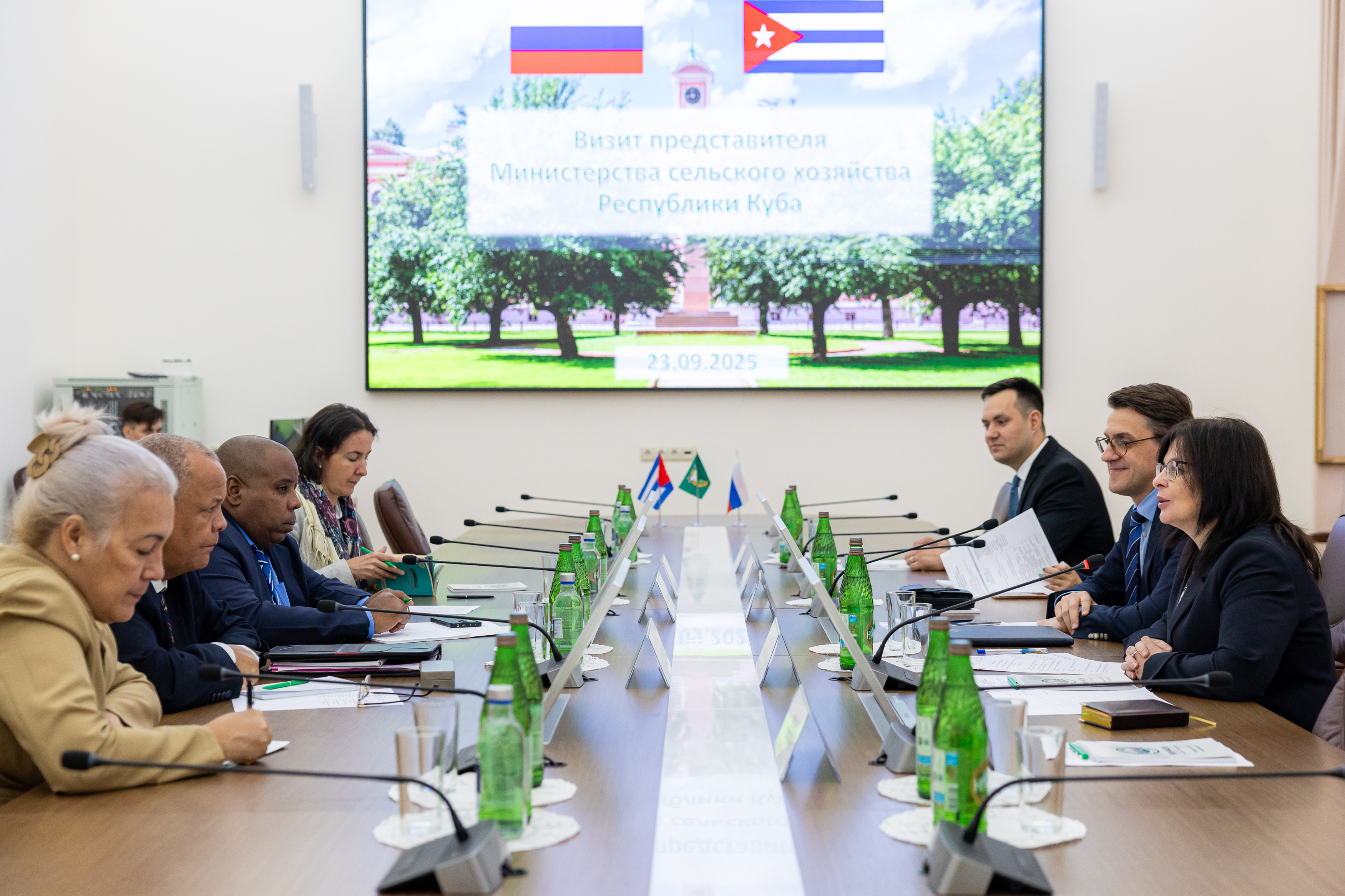 В период с 22 по 25 сентября 2025 года Российский государственный аграрный университет – МСХА имени К.А. Тимирязева принял с рабочим визитом директора департамента науки, инноваций и аграрной политики Министерства сельского хозяйства Республики Куба Александра Миранду Кабальеро. Ключевым итогом визита стало подписание Меморандума о взаимопонимании между Министерством сельского хозяйства Республики Куба и РГАУ-МСХА имени К.А. Тимирязева, что стало значимым шагом к укреплению российско-кубинского сотрудничества в области аграрной науки и образования.