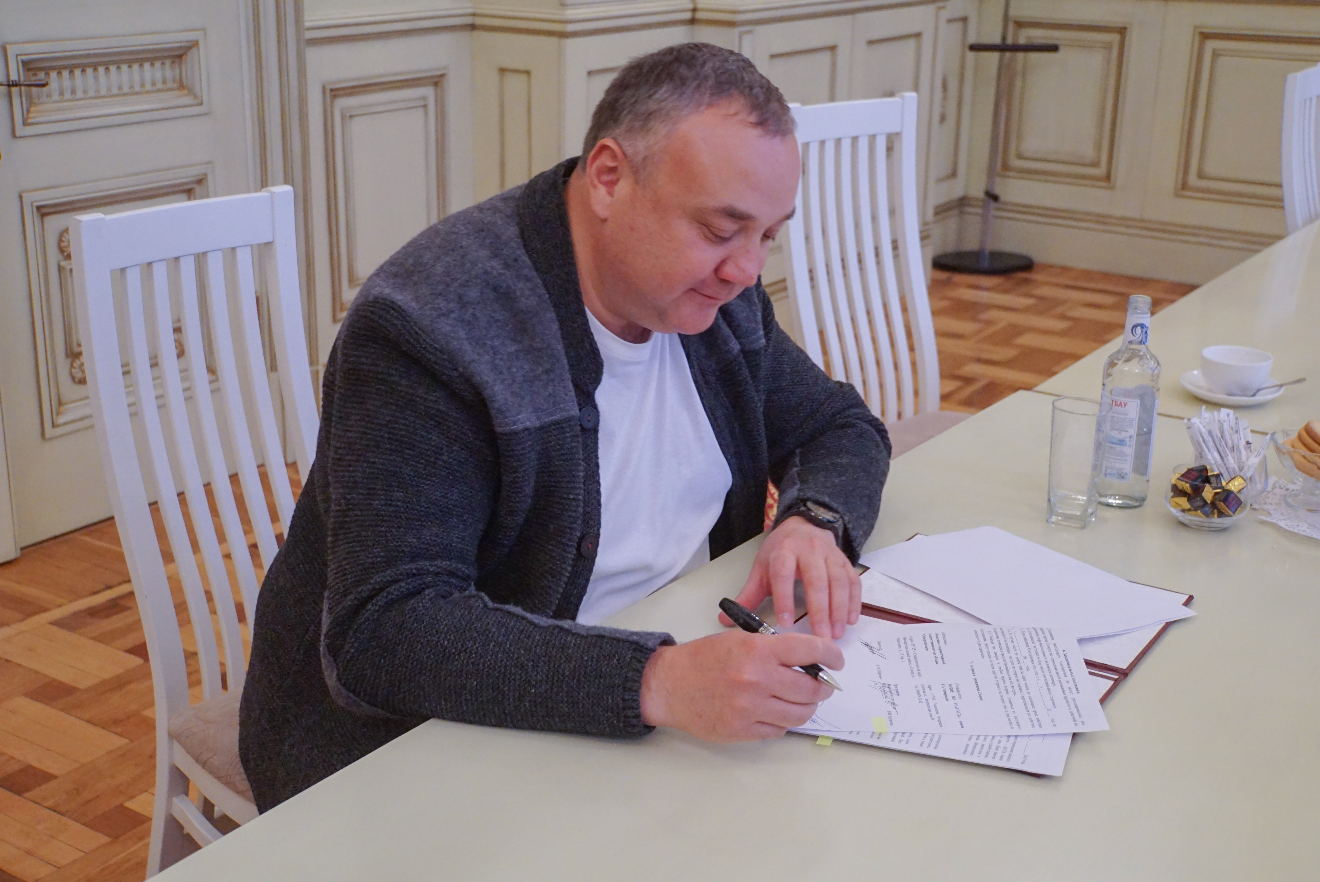 Подписанию предшествовал заинтересованный разговор о путях взаимодействия главного аграрного вуза страны и крупнейшего российского центра плодового питомниководства. В разговоре приняли участие и.о. проректора по административно-хозяйственной работе В.В. Кашеваров и заведующий лабораторией плодоводства РГАУ-МСХА Ю.В. Воскобойников.