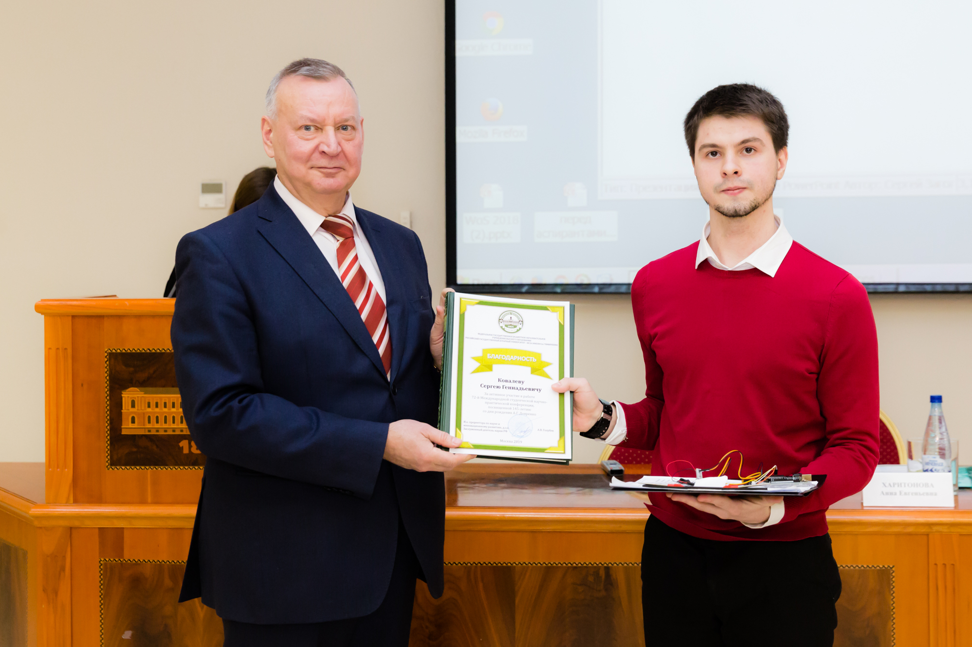 И.о. проректора по науке и инновационному развитию А.В. Голубев наградил победителей дипломами с благодарностью и ценными подарками. Всем остальным участникам конференции были вручены дипломы с благодарностью.