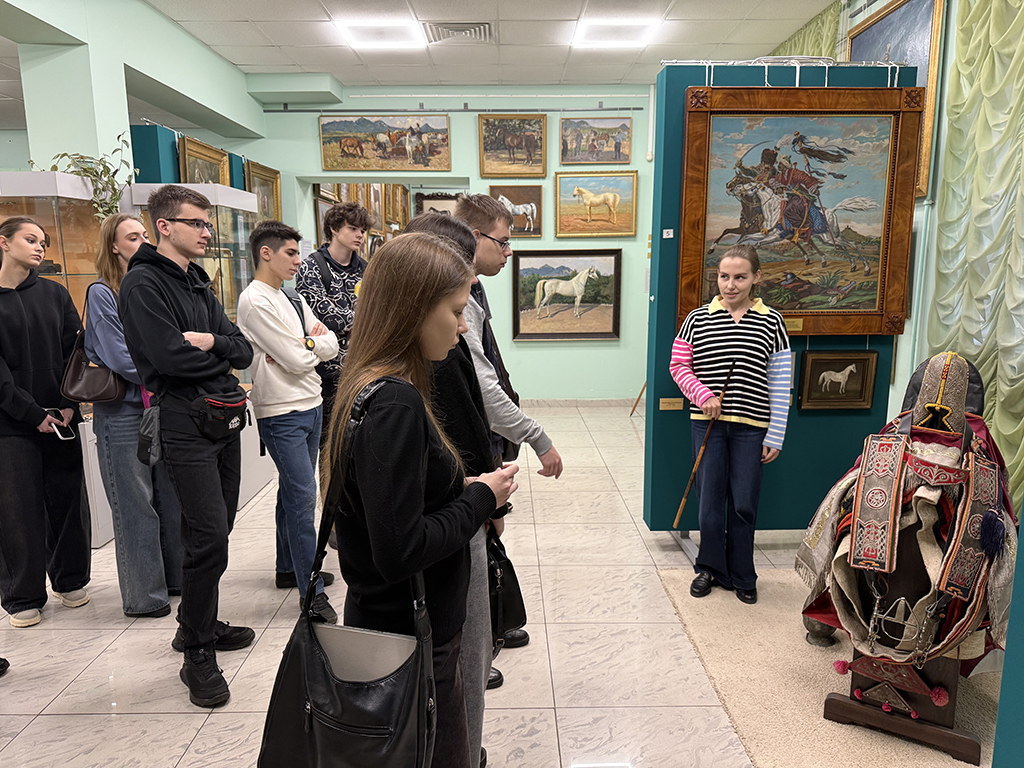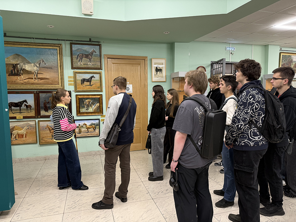 Сегодня музей обладает уникальным фондом, включающим более 200 авторов, работавших в конном жанре. Студенты увидели произведения станковой живописи, графики и скульптуры, которые представляют развитие анималистического искусства на протяжении столетий.