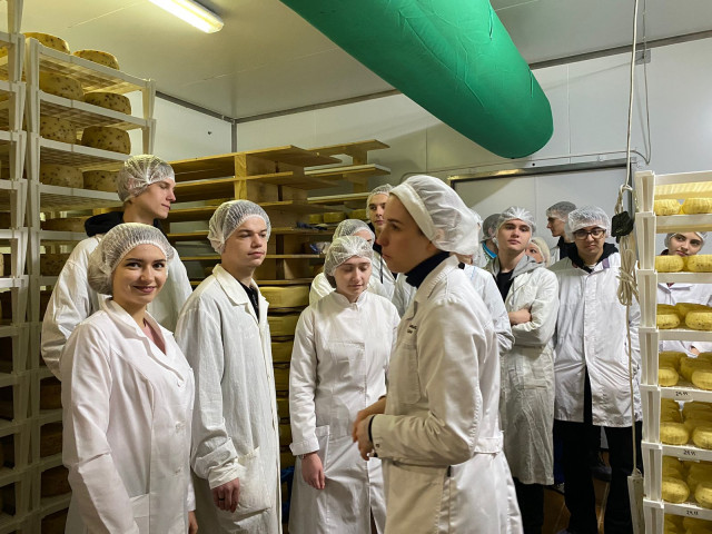 13 Декабрь / 2022Специалисты предприятия познакомили студентов с технологическими аспектами производства сыров различных видов. При посещении предприятия студенты на практике ознакомились со всеми технологическими этапами производства. Узнали режимы созревания, условия хранения, а также сроки реализации сыров.