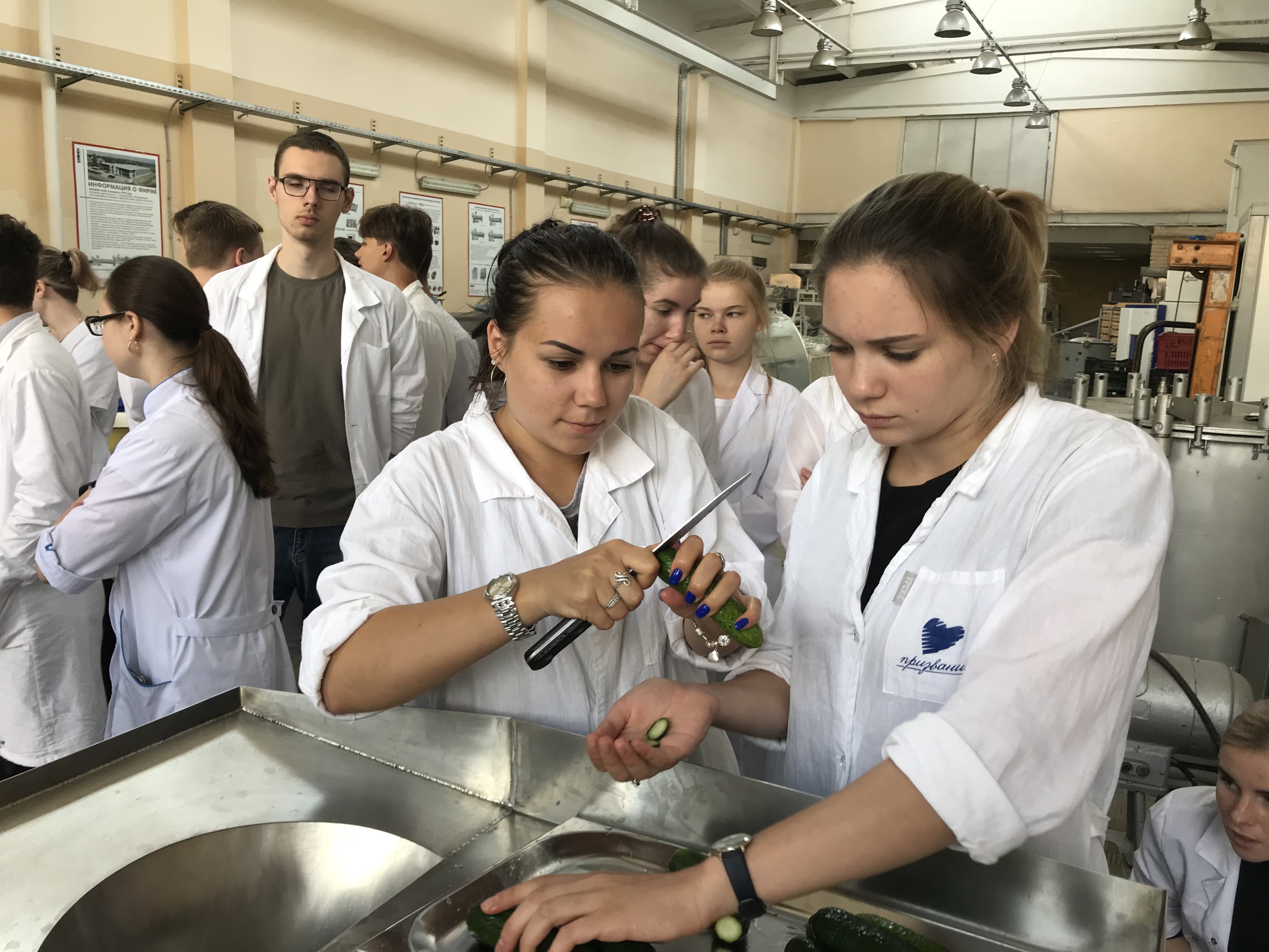 25 Июль / 2018По мнению самих студентов, одни из самых интересных практических занятий проходят на кафедре технологии хранения и переработки плодов и овощей. В течение недели юноши и девушки учатся мариновать огурцы и томаты, готовить квашеную капусту, производить овощные салаты и консервы - продукцию, которая всегда пользуется спросом на полках магазинов.