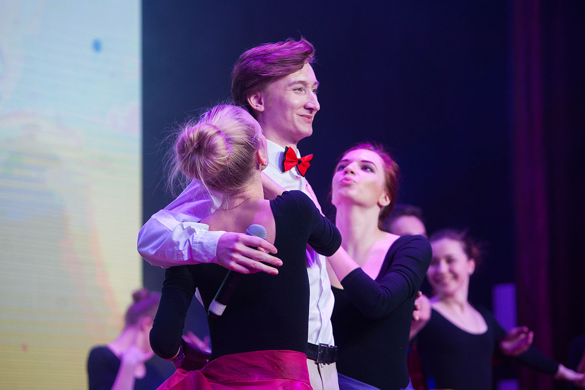Надежда и Андрей - дети доцента кафедры почвоведения, геологии и ландшафтоведения Натальи Поветкиной, Софья - дочь бухгалтера Натальи Ещиной, Анна - дочь сотрудника студгородка Натальи Заикиной, Диана - дочка начальника управления по воспитательной работе Юлии Мырксиной поздравили студентов и педагогов чтением стихов и зажигательным танцем!