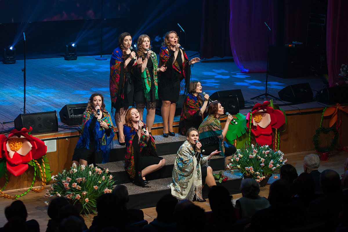 Этот вечер подарил много приятных сюрпризов от ярких звезд нашей эстрады! Создалось впечатление, что сцена Кремлевского дворца переместилась в Тимирязевскую академию! Первым из гостей выступил уникальный коллектив, работающий в стиле поп-рок, фолк-рок группа «После 11»! Выступление группы - подарок женщинам Тимирязевки от Театра русской песни и его руководителя Надежды Бабкиной!
