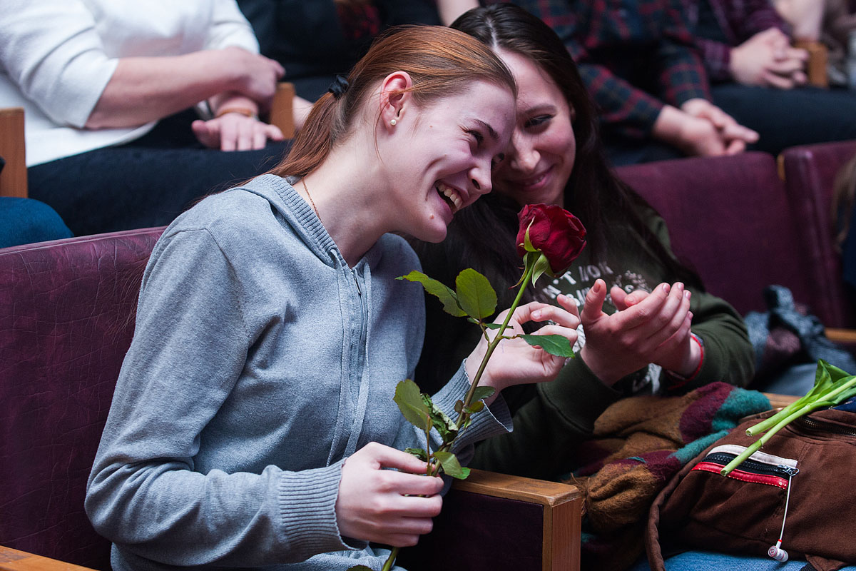 Старшему поколению этот мартовский день запомнится песнями в исполнении Зинаиды Кириенко - советской и российской актрисы, известной по фильмам "Судьба человека", "Тихий Дон", "Любовь земная". Актриса не скрывала радости от встречи со студентами:
