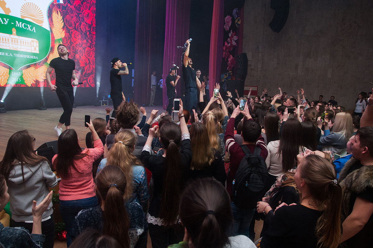 «Вы просто великолепны! Клянусь!» Артисты дарили девушкам и женщинам не только эмоции, но и цветы. А завершением выступления стал хит «Женщина, я не танцую»! Пространство перед сценой стало настоящей фан-зоной! Такой зажигательный и яркий вечер невозможно забыть! А артист так вдохновился тимирязевской атмосферой, что пообещал приехать на выпускной, и, по его словам, готов пойти работать в поля!