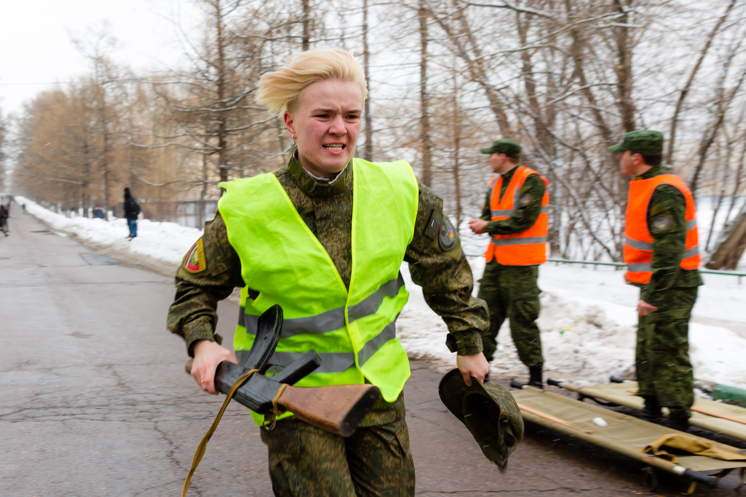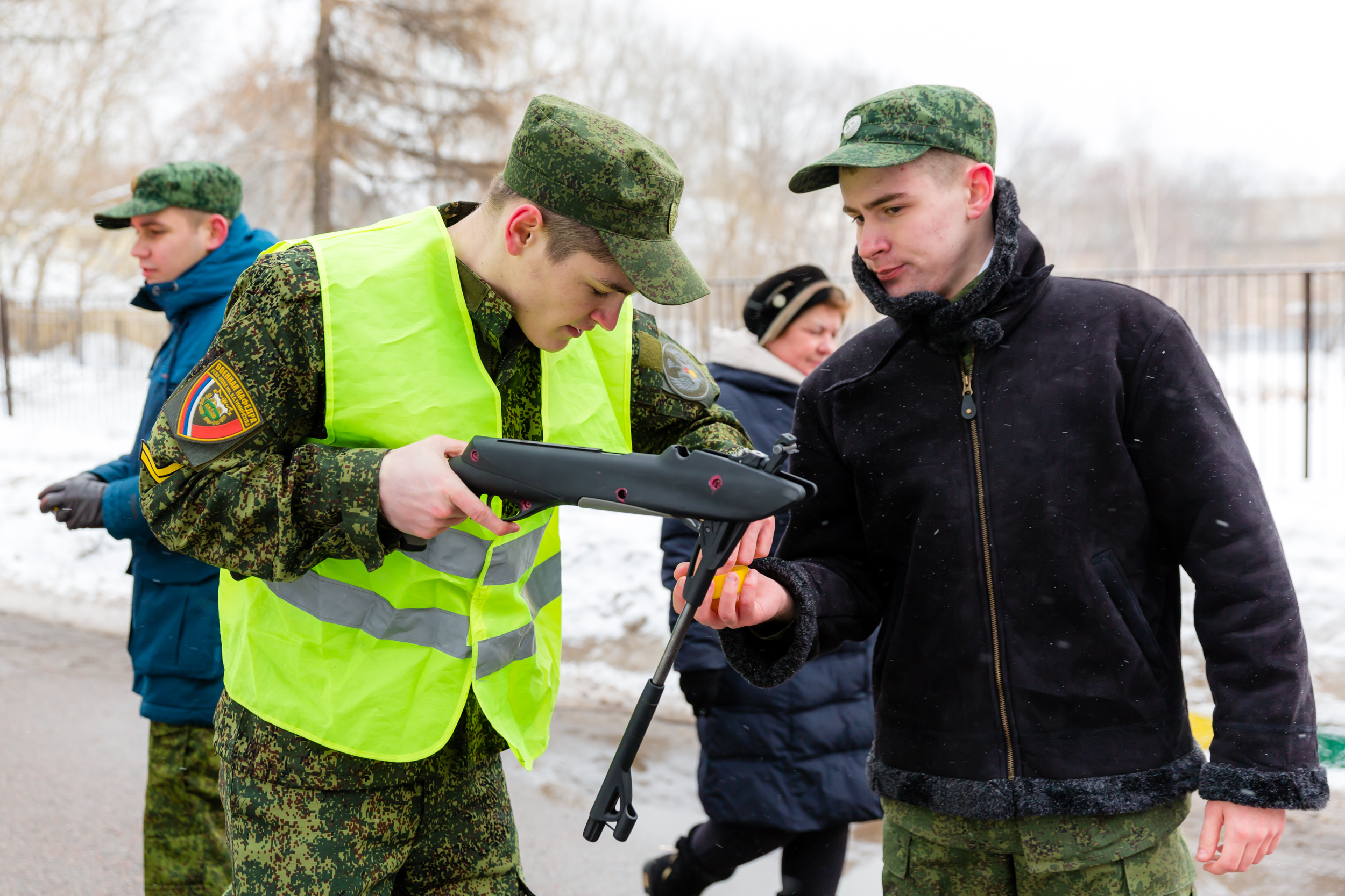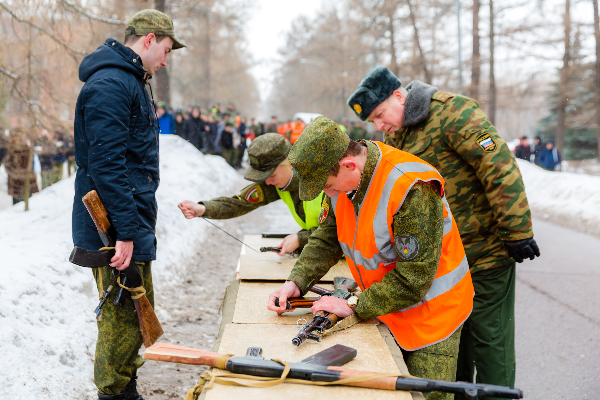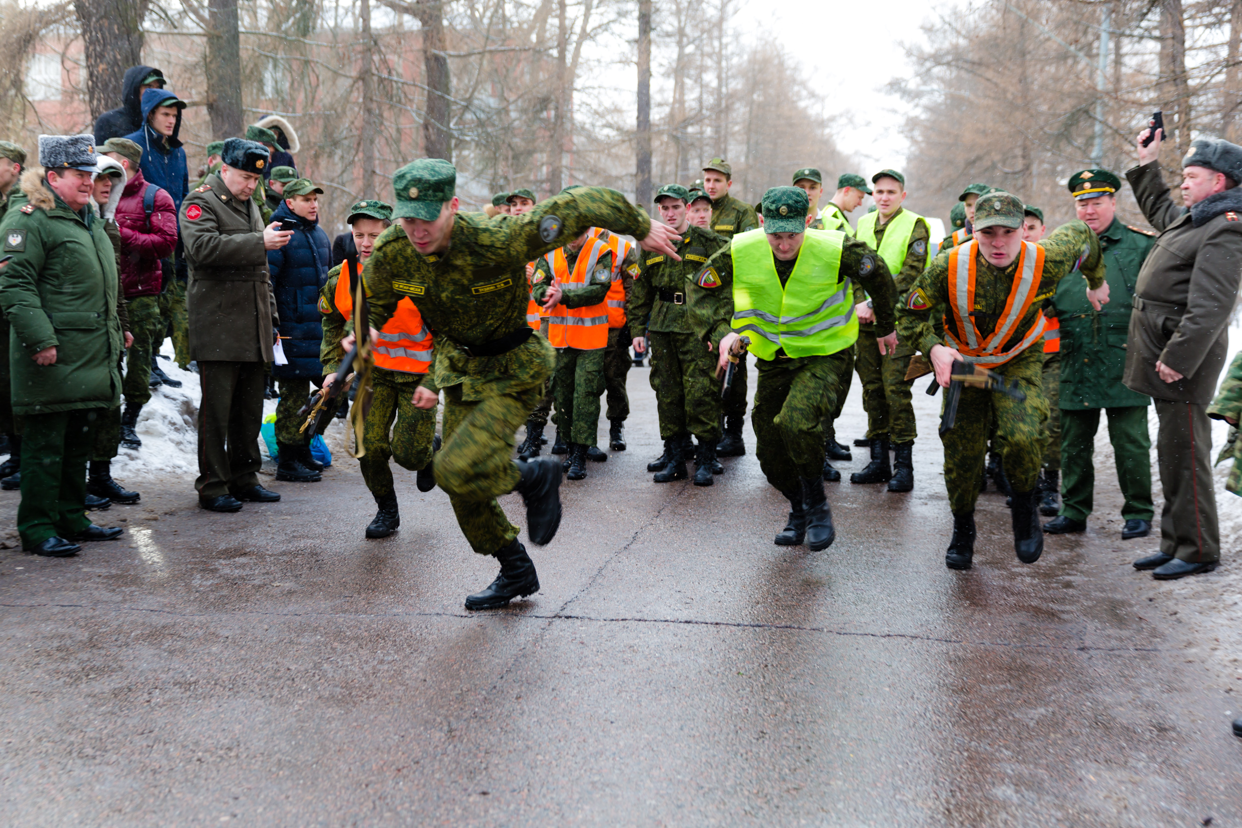 Главным же событием дня стали военно-спортивные соревнования. С особым интересом зрители наблюдали спринтерскую гонку со стрельбой из пневматических винтовок, выполнение нормативов по сборке автомата Калашников и надеванию противогазов. Участники команд в конце биатлонной эстафеты продемонстрировали умение в соревнованиях по «переноске раненых».