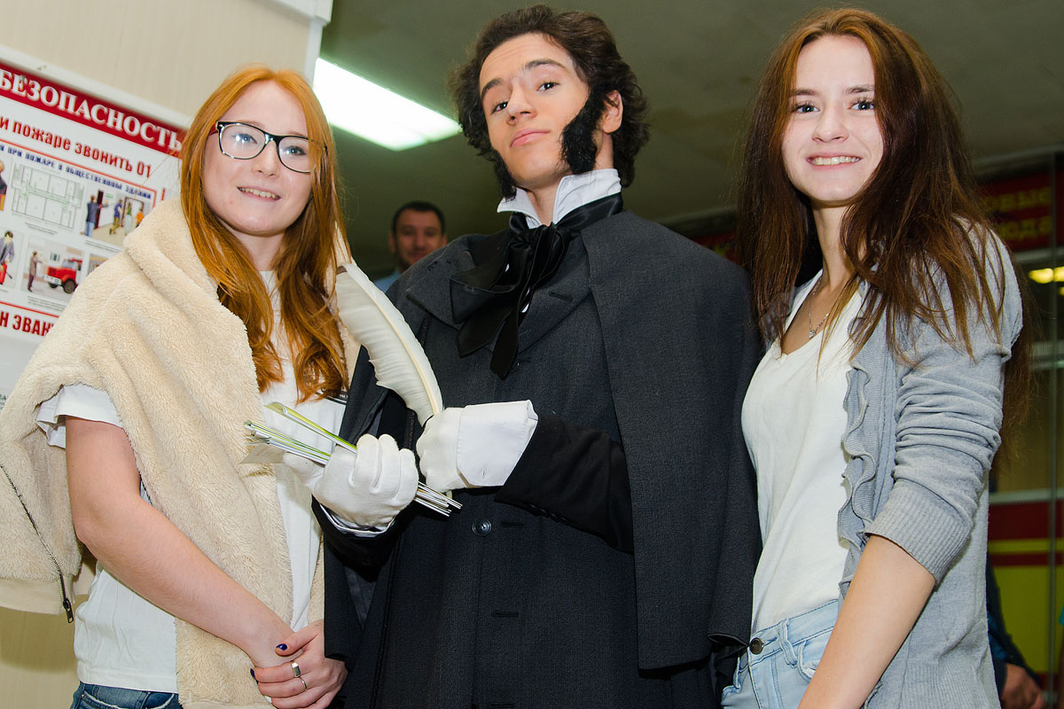 Школьников и родителей встречали сам Климент Аркадьевич Тимирязев и Александр Сергеевич Пушкин. Грим и костюмы прошлых эпох делали артистов молодежного театра-студии «Арт-аллеи» поразительно похожими на ученого, чье имя носит университет, и великого поэта.