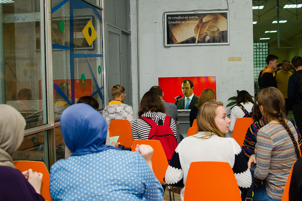 В этот день для старшеклассников была организована своеобразная выставка профессий, на которой деканы и преподаватели факультетов рассказывали о специфике направлений подготовки, предприятиях, где студенты проходят практику. Родители больше всего интересовались условиями проживания и возможностями последующего трудоустройства, а школьники — насколько интересна жизнь студентов в академии. На выставке также работали стенды приемной комиссии, военной кафедры, молодежных объединений, были представлены достижения ученых и студентов. В зале яблоку негде было упасть: на мероприятие пришло около двух тысяч старшеклассников.