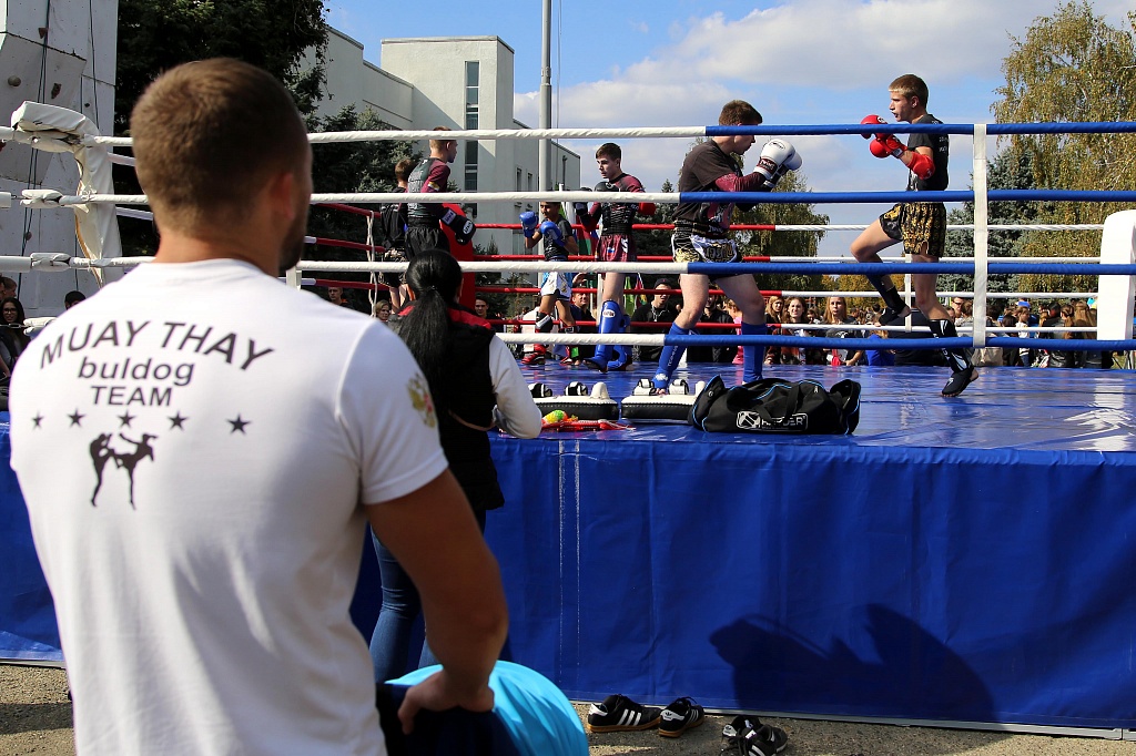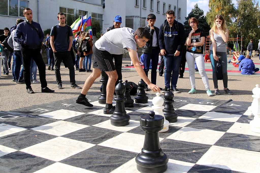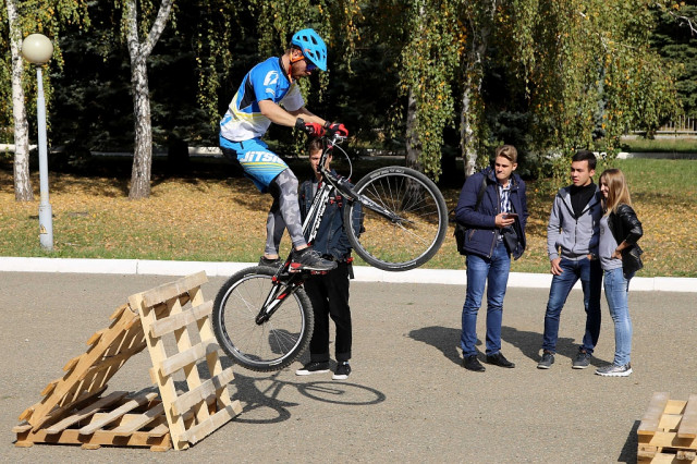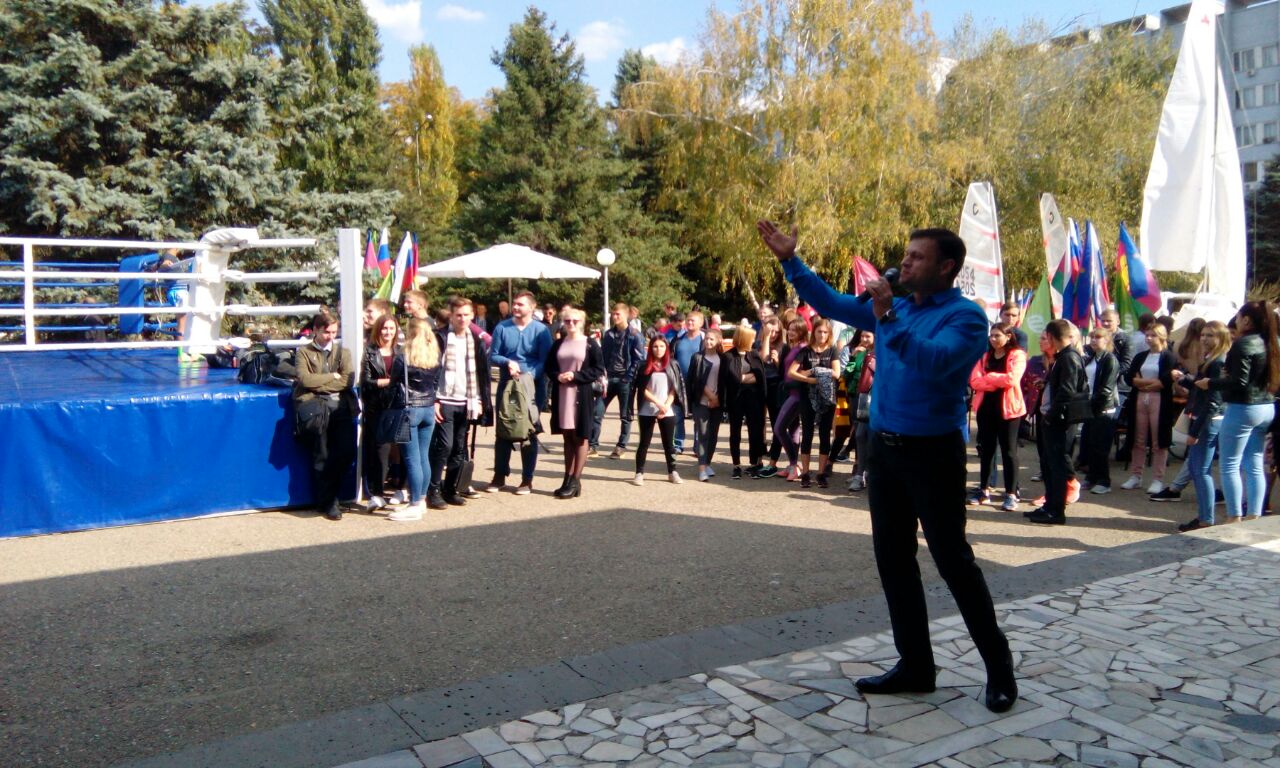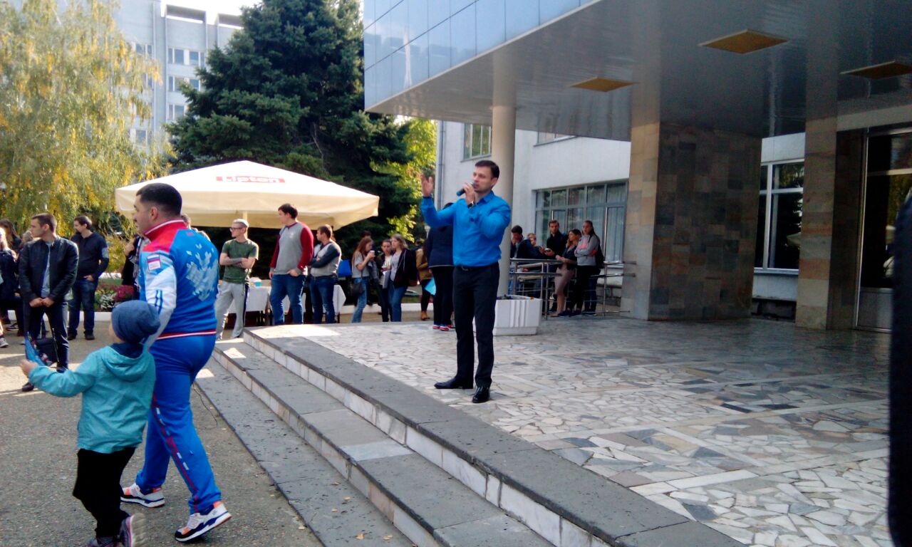 11 Октябрь / 2017Руководитель центра Рафик Ханбабаев, специалист по работе с молодежью Игорь Корнишин, доцент кафедры физвоспитания Сергей Никитченко познакомились с опытом коллег по проведению массовых спортивных мероприятий. Фестиваль в КубГАУ проводится второй год, но уже успел перерасти в крупномасштабное мероприятие и стать славной традицией университета. Перед спортивным комплексом развернулась выставка в составе более десятка тематических площадок. Участникам праздника была предоставлена уникальная возможность сразиться в настольный футбол, сдать нормативы ГТО, потренироваться в оказании первой медицинской помощи, посоревноваться в тировой стрельбе и других состязаниях.