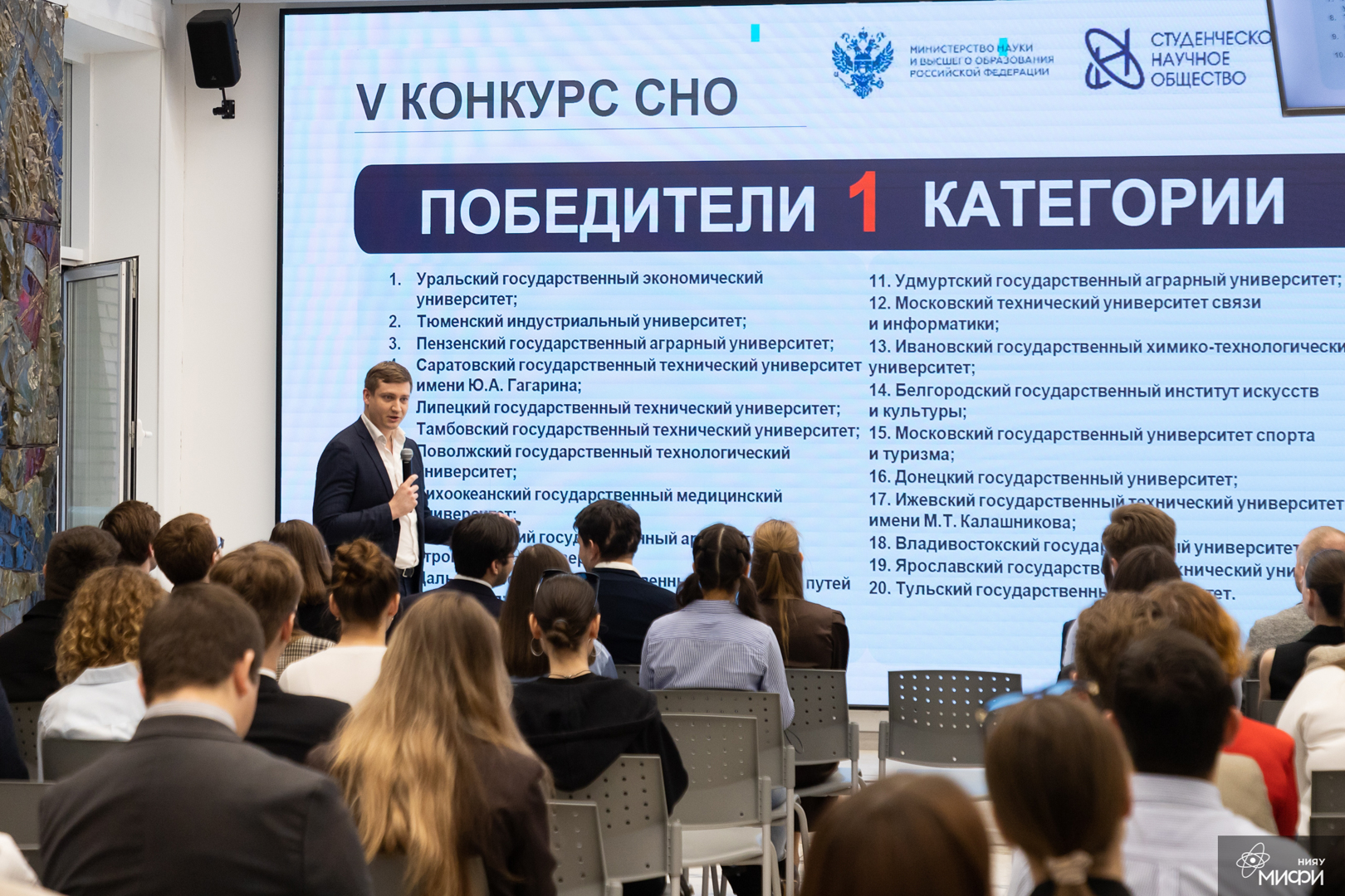 В ходе совещания были подведены итоги V конкурса СНО Минобрнауки России. В 2026 году конкурс продемонстрировал высокий уровень конкуренции: из 299 поданных заявок к участию было допущено 246, победителями признаны 40 студенческих научных обществ. Особое внимание было уделено новым требованиям к деятельности СНО, включая переход к системной работе, внедрение механизмов софинансирования и усиление показателей эффективности.