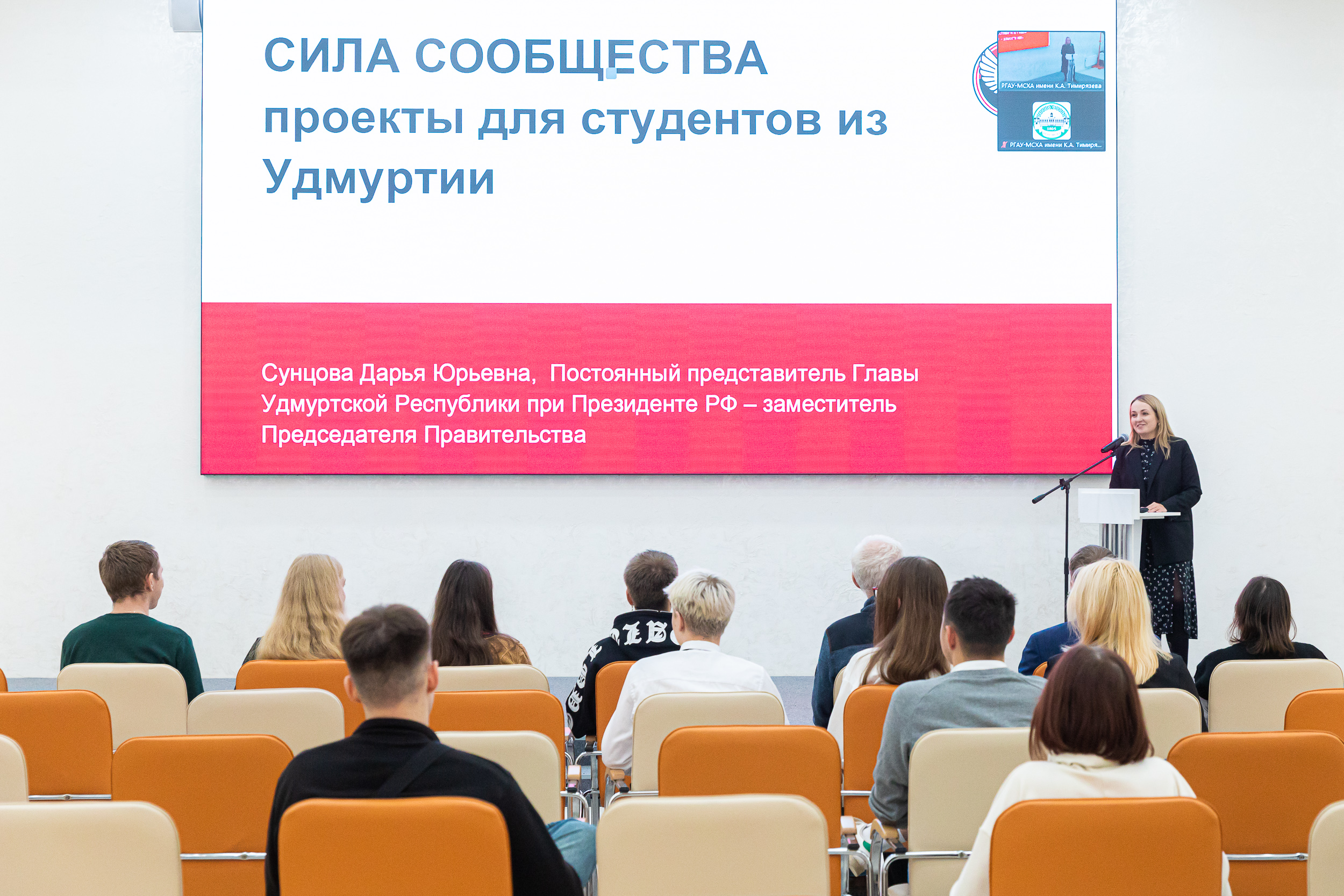 Постоянное представительство Удмуртской Республики в Москве запустило серию встреч со студентами-уроженцами Удмуртии, которые сейчас учатся в столичных вузах. Отправной точкой стало знакомство со студентами главного аграрного вуза страны - РГАУ-МСХА имени К.А. Тимирязева.