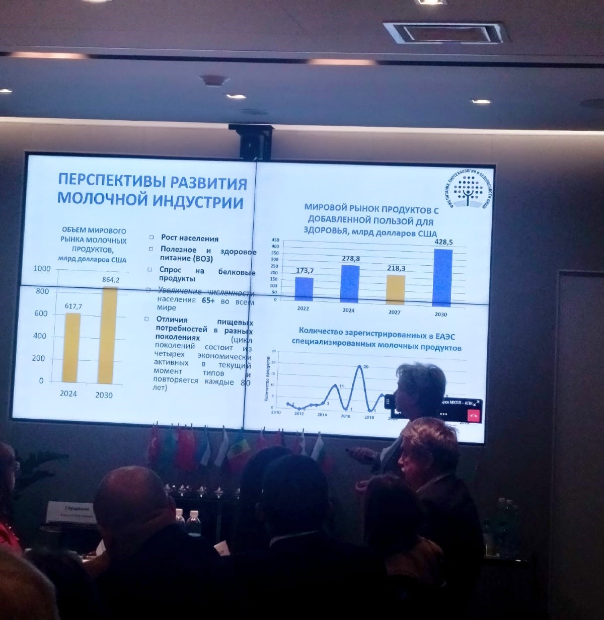 На заседании Комитета по науке Международного Конгресса Промышленников и Предпринимателей (МКПП) от Тимирязевской академии в качестве приглашенного эксперта побывала доцент кафедры экономической безопасности и права Трясцина Нина Юрьевна. Тема заседания - «Наука и инновации в развитии пищевой промышленности и АПК: приоритеты и перспективы» очень актуальна, так как внедрение новых технологий способствует повышению эффективности производства, улучшению качества и безопасности продуктов питания, экономии ресурсов и снижению отходов.