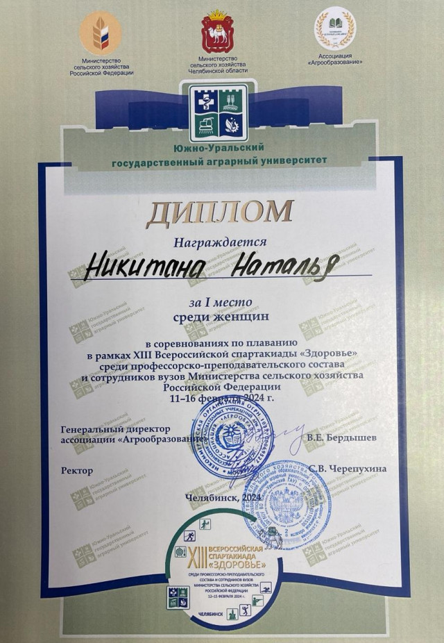 На базе бассейна Учебно-спортивного комплекса Южно-Уральского Государственного Университета 13 и 14 февраля состоялась XIII Всероссийская спартакиада "ЗДОРОВЬЕ" среди преподавателей и сотрудников ВУЗов Минсельхоза России.