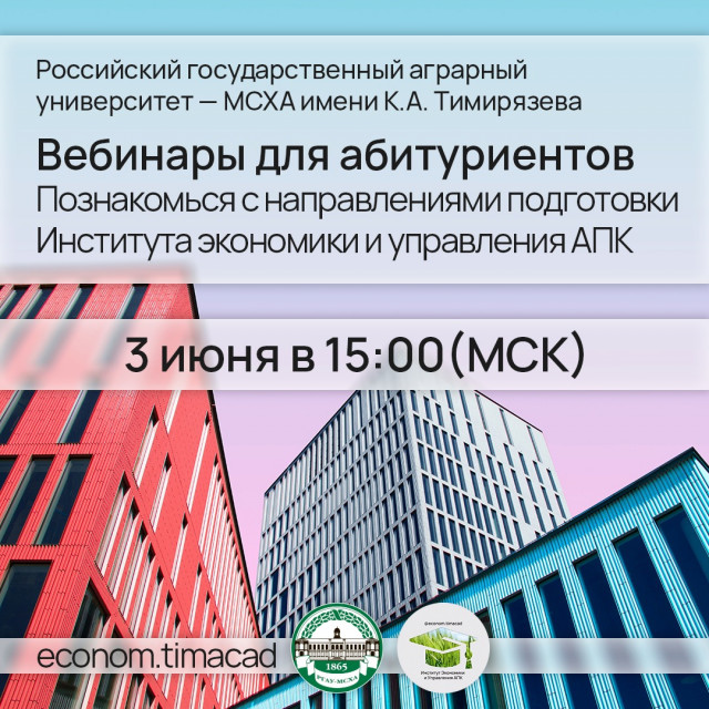 Приглашаем абитуриентов на серию вебинаров по направлениям подготовки Института экономики и управления АПК Тимирязевской академии!