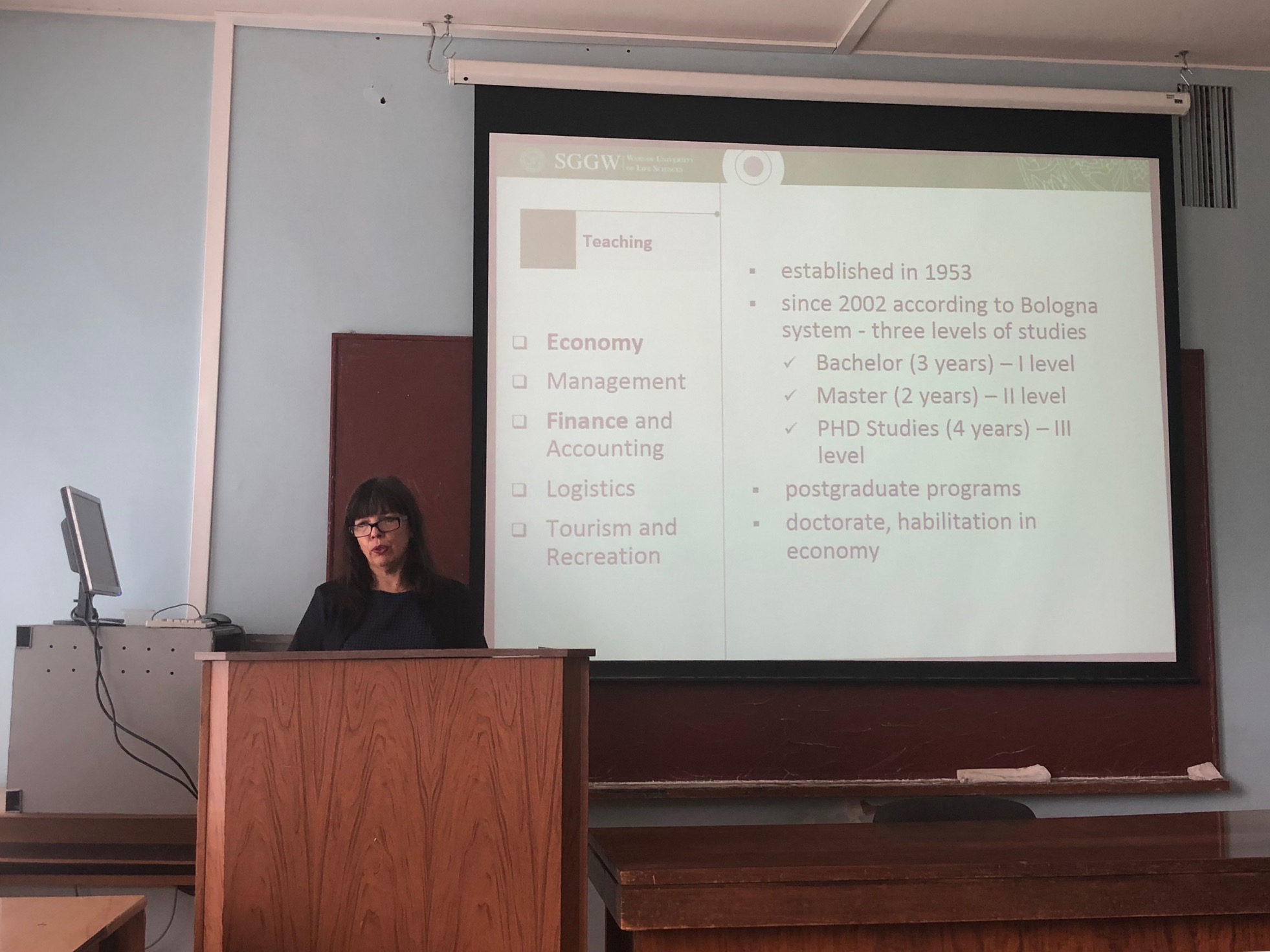 11 июля состоялась лекция профессора SGGW (Варшавского университета естественных наук) Эльжбеты Шиманской для студентов бакалавриата, профиль «мировая экономика» (на английском языке). Лекция была организована Управлением международных связей совместно с кафедрой мировой экономики Института экономики и управления АПК.