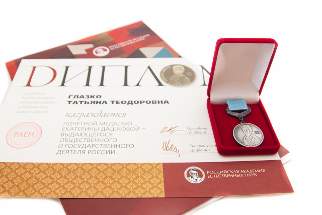 На заседании Российской академии естественных наук профессора кафедры кормления и разведения, доктора сельскохозяйственных наук Татьяну Глазко наградили почетной медалью Екатерины Дашковой и дипломом. Награду вручал президент РАЕН Олег Кузнецов.