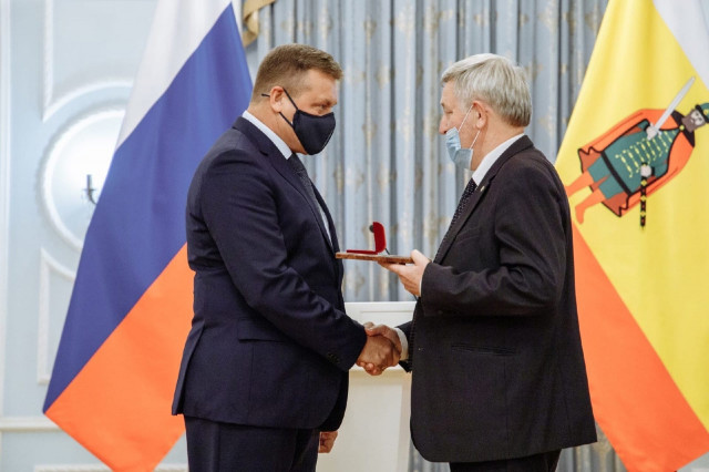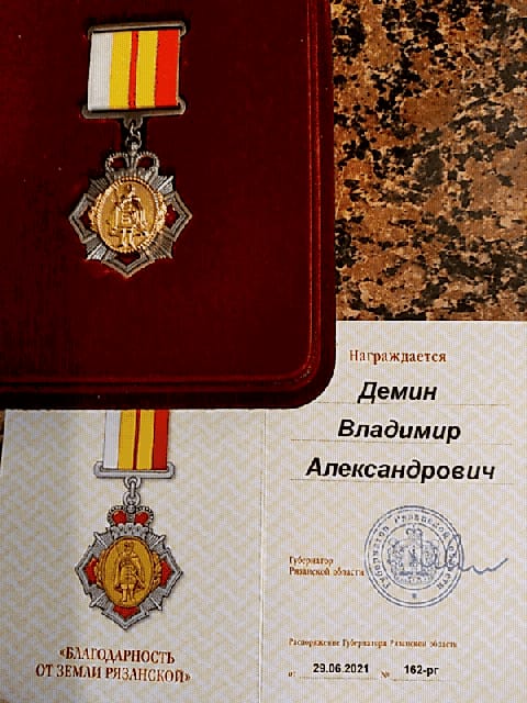 Высокой наградой Губернатор Рязанской области Николай Викторович Любимов высоко оценил заслуги заведующего кафедрой коневодства, профессора Владимира Александровича Демина и возглавляемой им кафедры коневодства РГАУ-МСХА имени К.А. Тимирязева в воссоздании русской верховой породы лошадей.