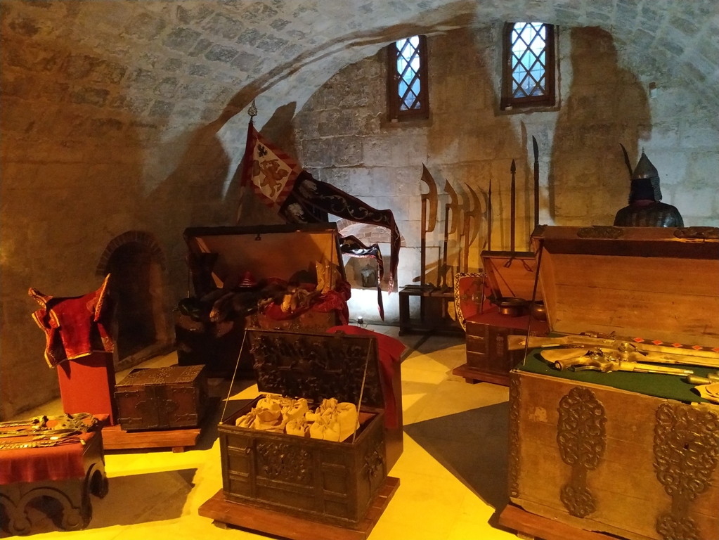 Дружной командой гости музея направились в историческое здание и погрузились в давний быт Руси. Экскурсовод пригласил всех спуститься в белокаменный подвал, в кладовых которого хранились продуктовые запасы, орудия труда, казна, оружие и доспехи.