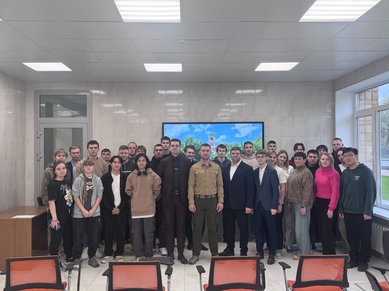 В ходе живого диалога были затронуты ключевые вопросы нравственного и патриотического воспитания студенческой молодежи. Особое внимание уделили современным вызовам – проблеме дезинформации и информационным угрозам, с которыми общество, а в особенности молодое поколение, сталкивается в социальных сетях и глобальном информационном пространстве. Дмитрий Игоревич на примере собственного опыта, полученного в реальных боевых условиях, рассказал о важности критического мышления, умения отличать правду от лжи и необходимости сохранять бдительность в условиях информационной войны.