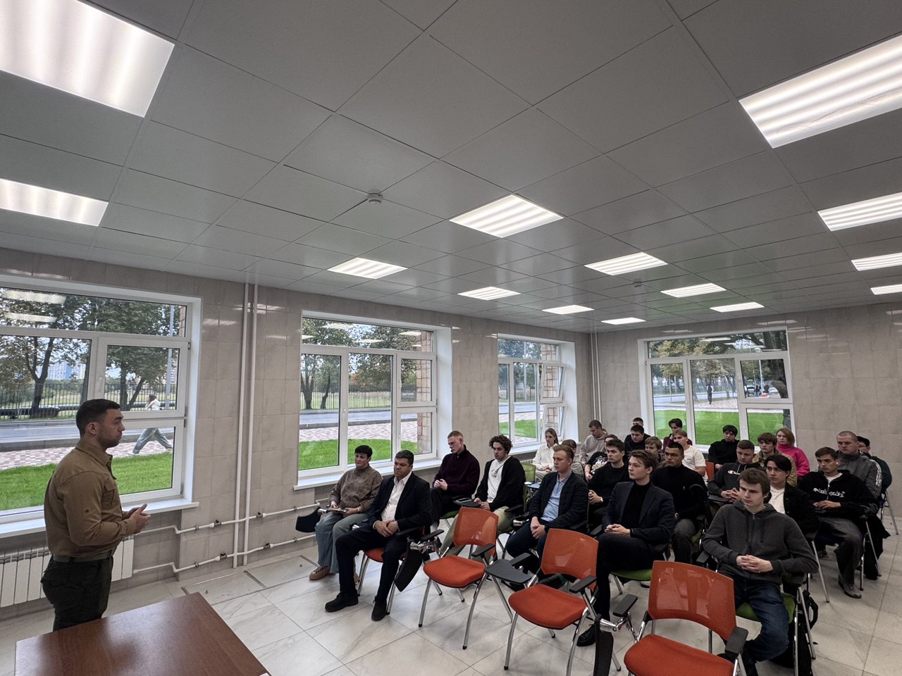 03 Октябрь / 2025Организованное молодежным патриотическим центром «Возрождение» совместно с РГАУ-МСХА имени К.А. Тимирязева, это мероприятие стало важной площадкой для формирования истинных ценностей и гражданской ответственности. Спикером выступил Дмитрий Игоревич Бутузов – ветеран СВО, мобилизованный офицер, участник программы «Герои Подмосковья», общественный деятель и историк. Его присутствие и личный опыт придали встрече особую значимость и искренность.