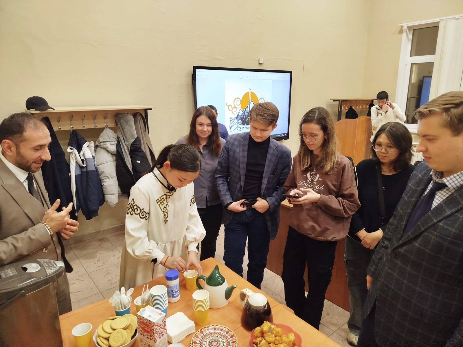 Наши студенты, Лера Кыргыс, Сугдер Кан-оол и Хорагай Сарыг-Донгак, с гордостью и увлечением поделились со всеми присутствующими богатством своей малой родины. Гости вечера погрузились в удивительный мир тувинских традиций, узнали о красоте и мелодичности тувинского языка, а также восхитились живописными достопримечательностями этого уникального края.