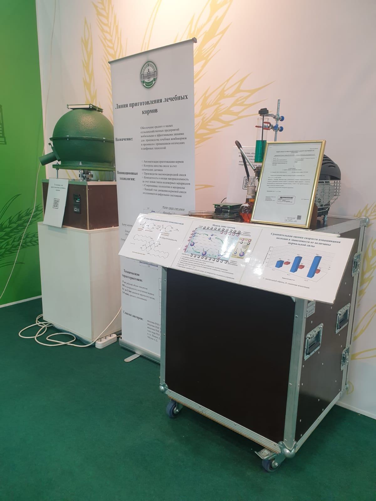 Технологическая линия приготовления лечебных кормов для животноводства и птицеводства представлена коллективом кафедры тракторов и автомобилей во главе с академиком РАН, д.с.-х.н., д.э.н., ректором Трухачевым Владимиром Ивановичем и заведующим кафедрой тракторов и автомобилей академиком РАН, д.т.н., профессором Дидманидзе Отари Назировичем. Данная разработка имеет большую ценность для животноводства и птицеводства, так как необходимость ветеринарной обработки в сжатые сроки большого поголовья, повышение нагрузки ветеринарных специалистов вызывает необходимость высокоэффективных, экономичных, удобных в работе способов и технических средств приготовления и дачи лекарственных препаратов.