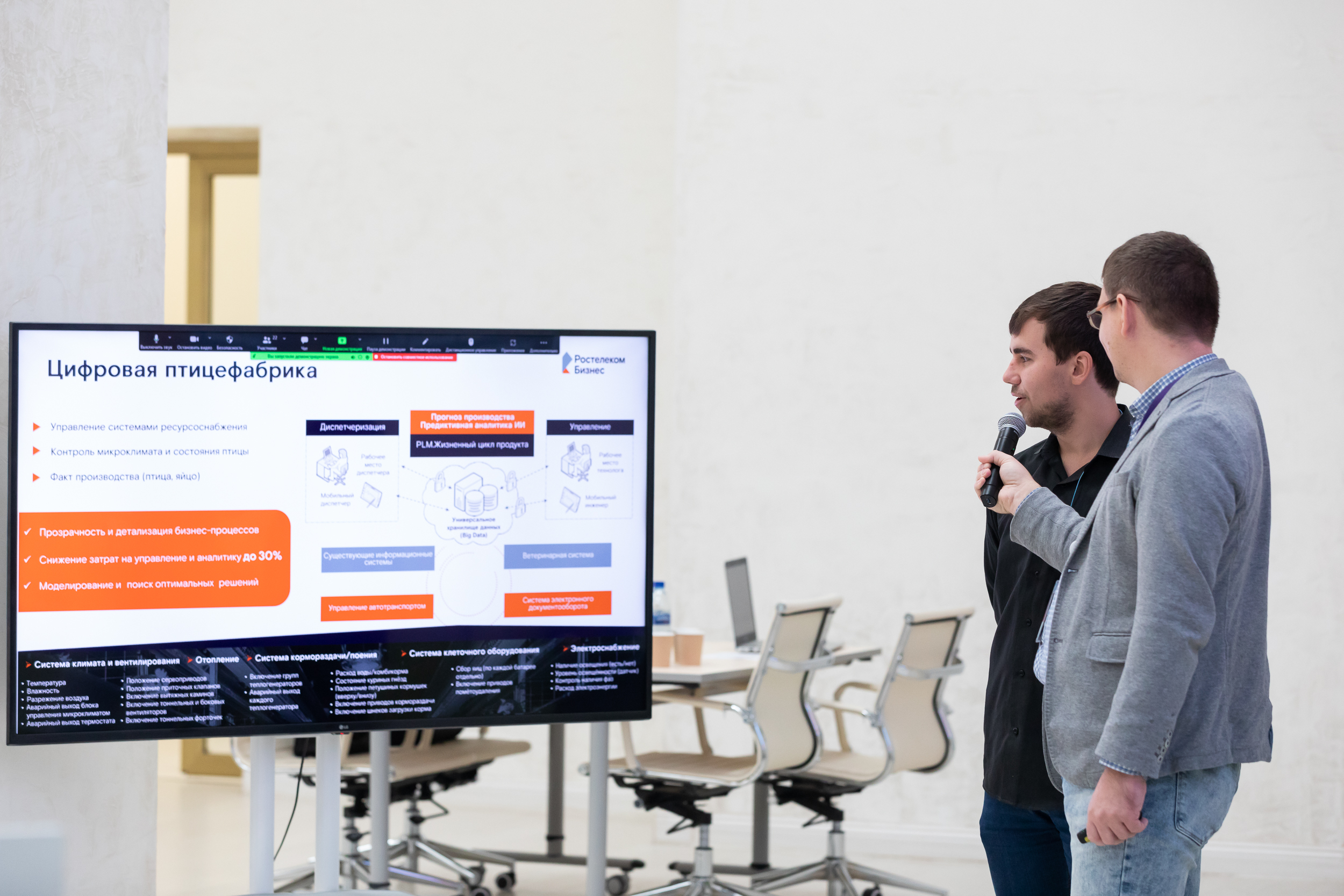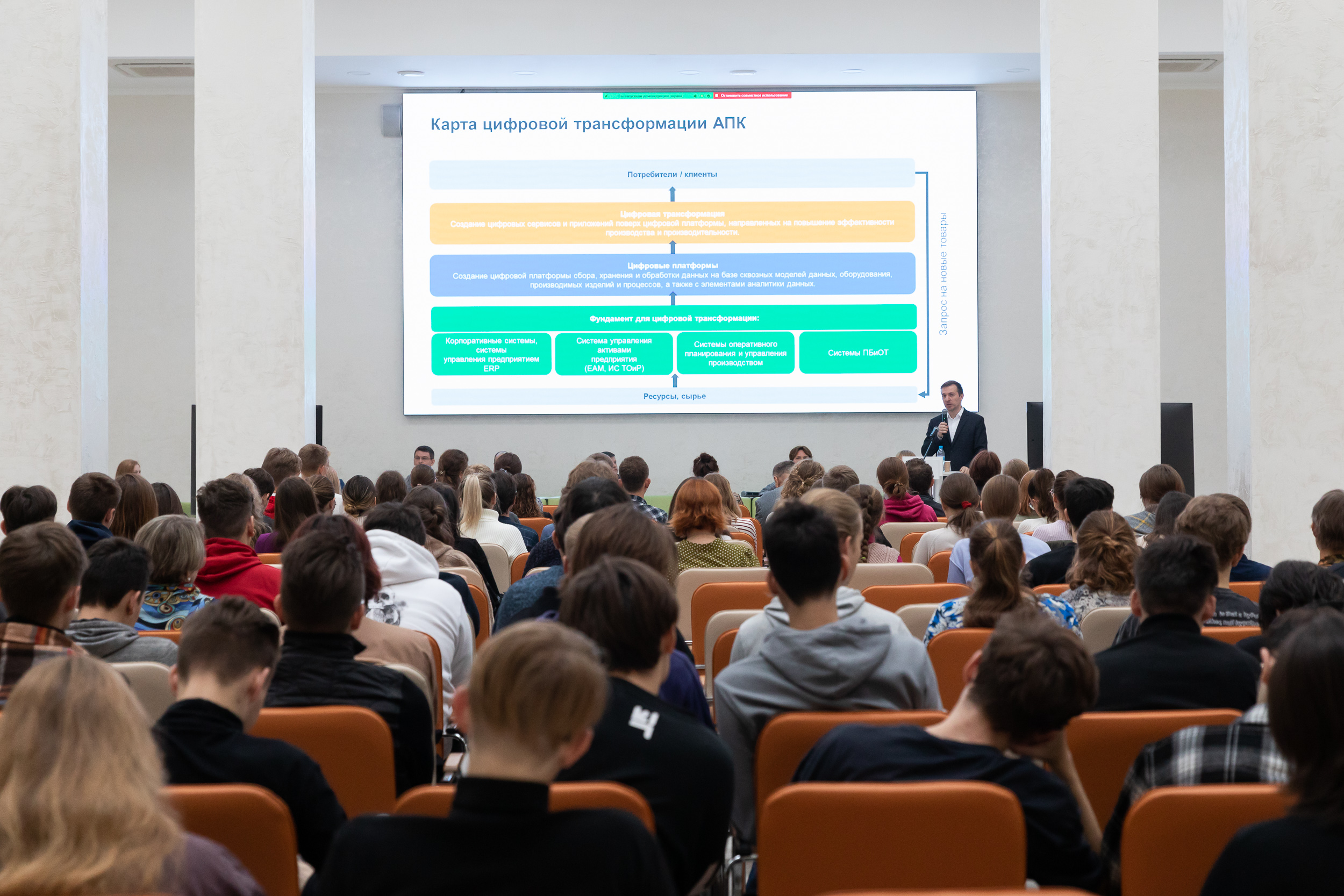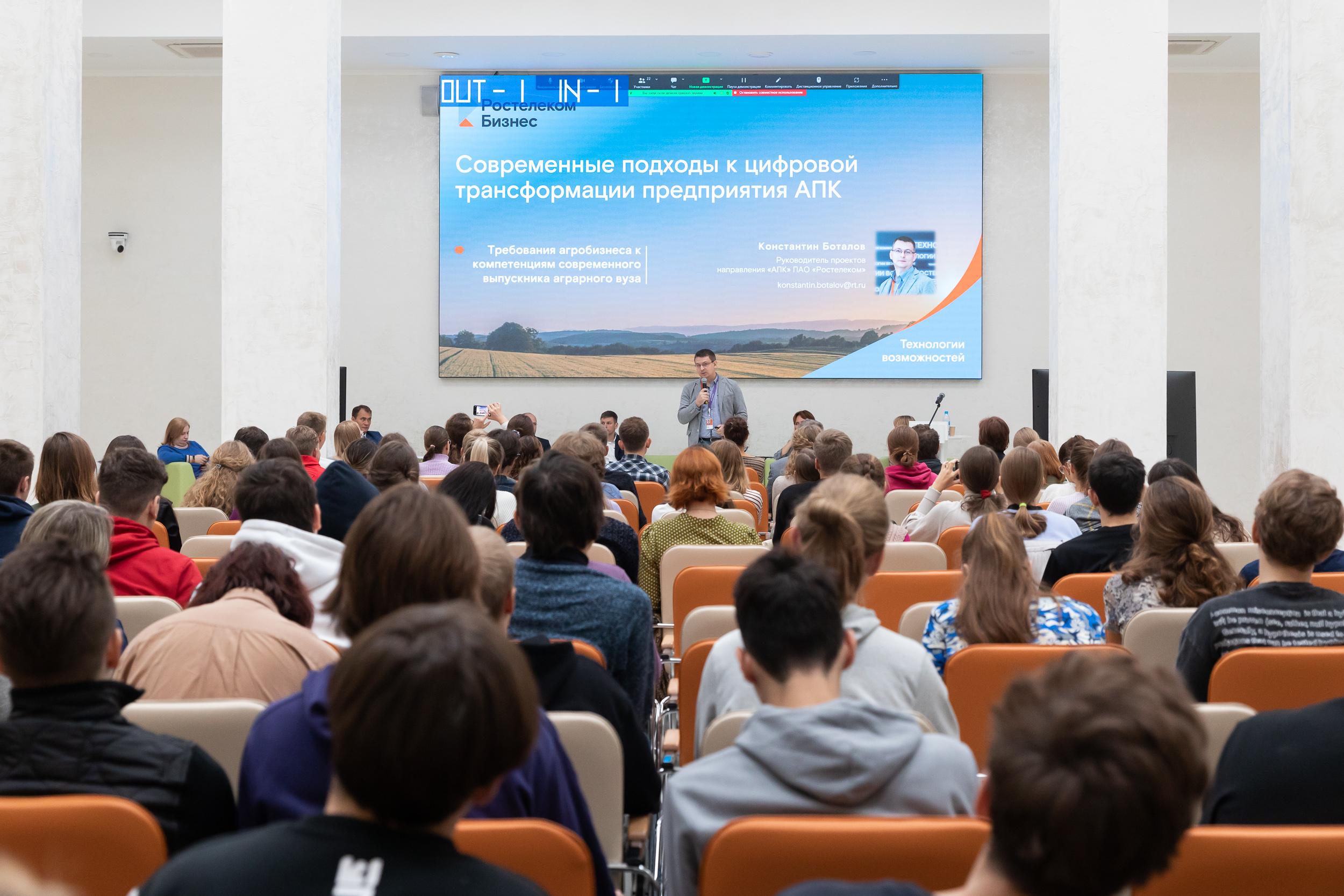 Живые отклики участников дискуссии вызвало выступление руководителя проектов направления «Агропромышленный комплекс» ПАО «Ростелеком» Константина Владимировича Боталова, который не только рассказал о современных подходах к цифровой трансформации предприятия АПК, но и представил интересные кейсы с участием студентов.