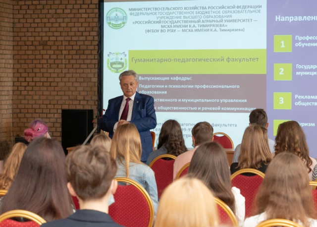 Студентов факультета агрономии и биотехнологии поздравил с началом учебного года председатель Совета ветеранов РГАУ-МСХА, доктор экономических наук, профессор Юрий Исуфович Агирбов. Он рассказал, как окончил школу с золотой медалью в Черкесске и поступил в Тимирязевскую академию.