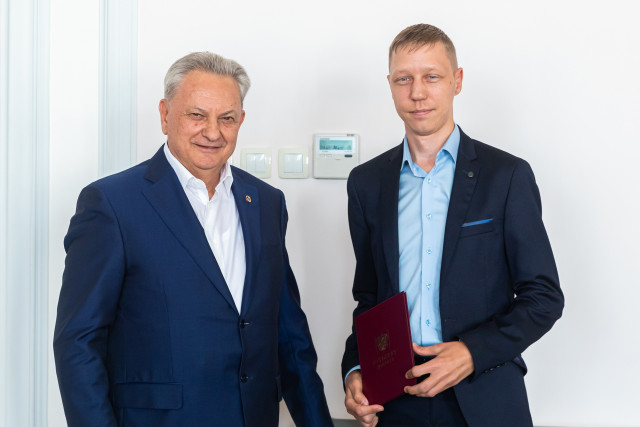 В тожественной обстановке заседания Ученого совета, Ректор университета, Академик РАН, профессор Владимир Иванович Трухачев вручил аттестат о присвоении ученого звания доцента по научной специальности «Технологии, машины и оборудование для агропромышленного комплекса» кандидату технических наук, доценту кафедры инженерной и компьютерной графики Дмитрию Алексеевичу Рыбалкину.