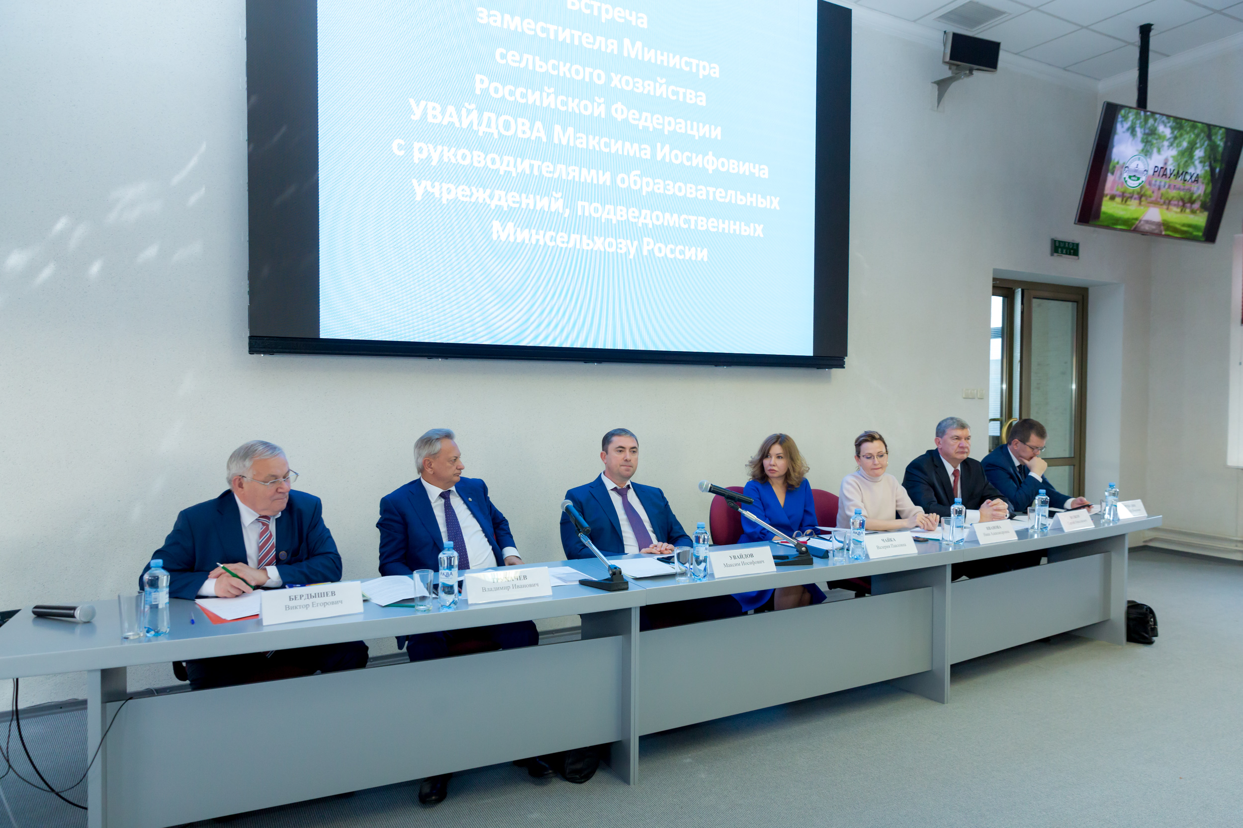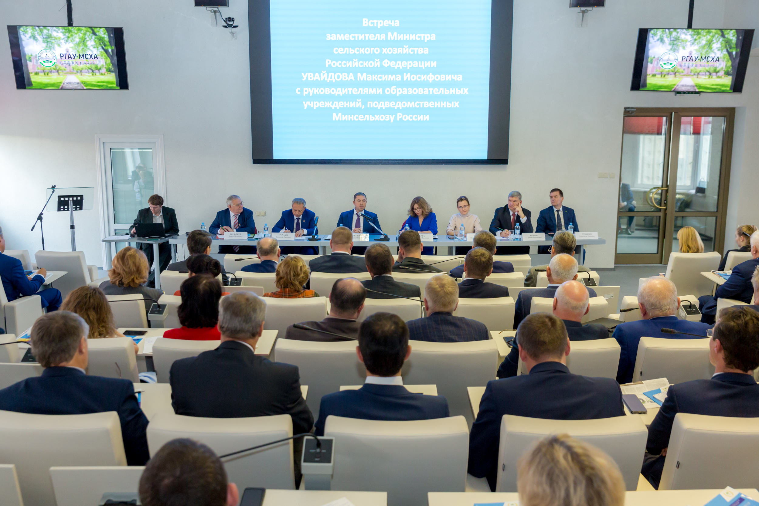 В рамках программы XXI Российской агропромышленной выставки «Золотая осень – 2019» заместитель министра сельского хозяйства Российской Федерации М.И. Увайдов провел в Тимирязевке встречу с руководителями аграрных вузов страны. Встречу организовал Департамент научно-технологической политики и образования Минсельхоза.