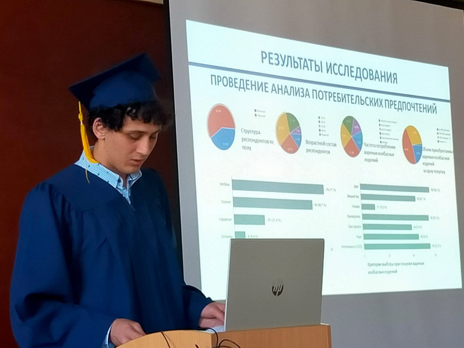 День защиты ВКР – это время волнений и переживаний не только для студентов, но и для их руководителей, и даже для членов государственной экзаменационной комиссии. Большинство выпускных квалификационных работ наших студентов было направлено на разработку рецептуры и технологии продуктов питания животного происхождения, с последующей всесторонней оценкой качества готового продукта, но были также работы посвященные проектированию цехов различной мощности по производству и переработке продукции животноводства.