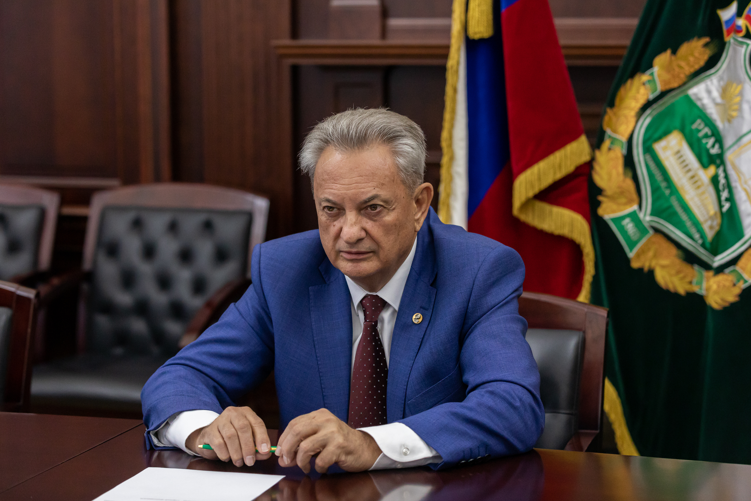 В рамках проведения исследований по проекту «Научно-методологические основы организации учебного процесса в условиях дистанционного обучения в исследовательском университете аграрного типа» в Тимирязевскую академию прибыла представительная делегация Казахского агротехнического университета во главе с ректором Айтжаном Мухамеджановичем Абдыровым. Коллегу из Казахстана принял ректор РГАУ-МСХА имени К.А. Тимирязева, Академик РАН, профессор Владимир Иванович Трухачев.