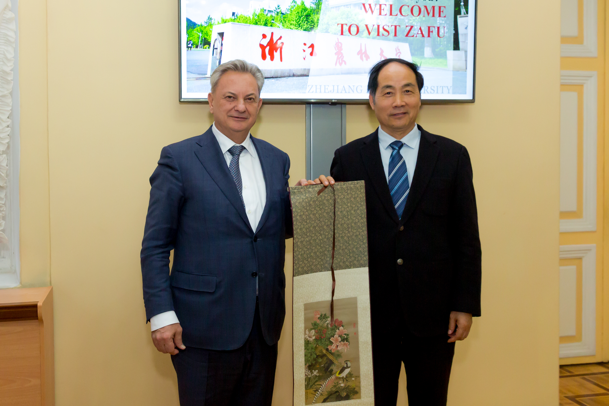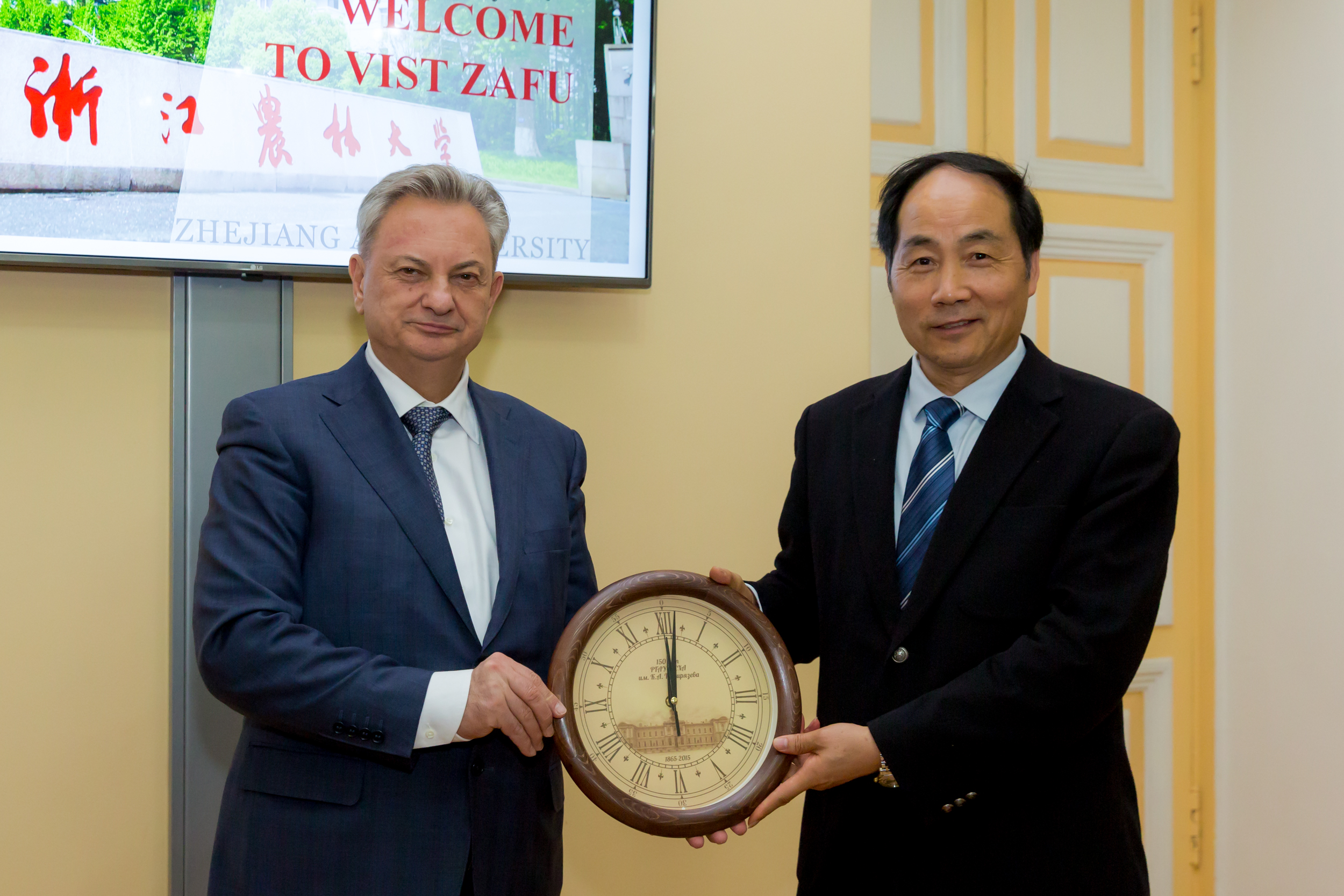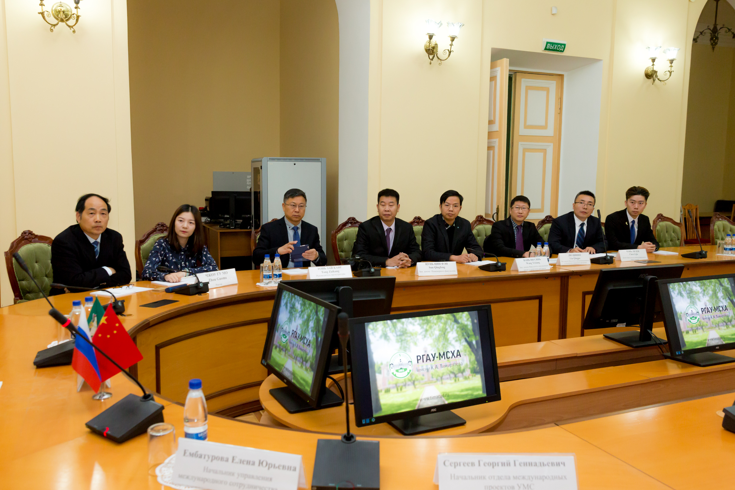 Приветствуя гостей, врио ректора РГАУ-МСХА, академик РАН, профессор Владимир Иванович Трухачев отметил, что у Тимирязевской академии накоплен большой опыт сотрудничества с китайскими университетами еще с советских времен. Заключено восемь договоров о сотрудничестве с университетами и организациями КНР. На сегодняшний день в РГАУ обучаются 189 граждан КНР. Большая группа китайских коллег из Университета Ганьсу прошла курсы повышения квалификации на базе тимирязевского Института непрерывного образования. «Практически ежемесячно мы принимаем у себя китайских друзей и партнеров. Это нас взаимно обогащает. Вот почему мы готовы развивать и наращивать наше сотрудничество с вашим государством. Сегодня открыто об этом говорим и всячески приветствуем ваш визит», – сказал В.И.Трухачев.